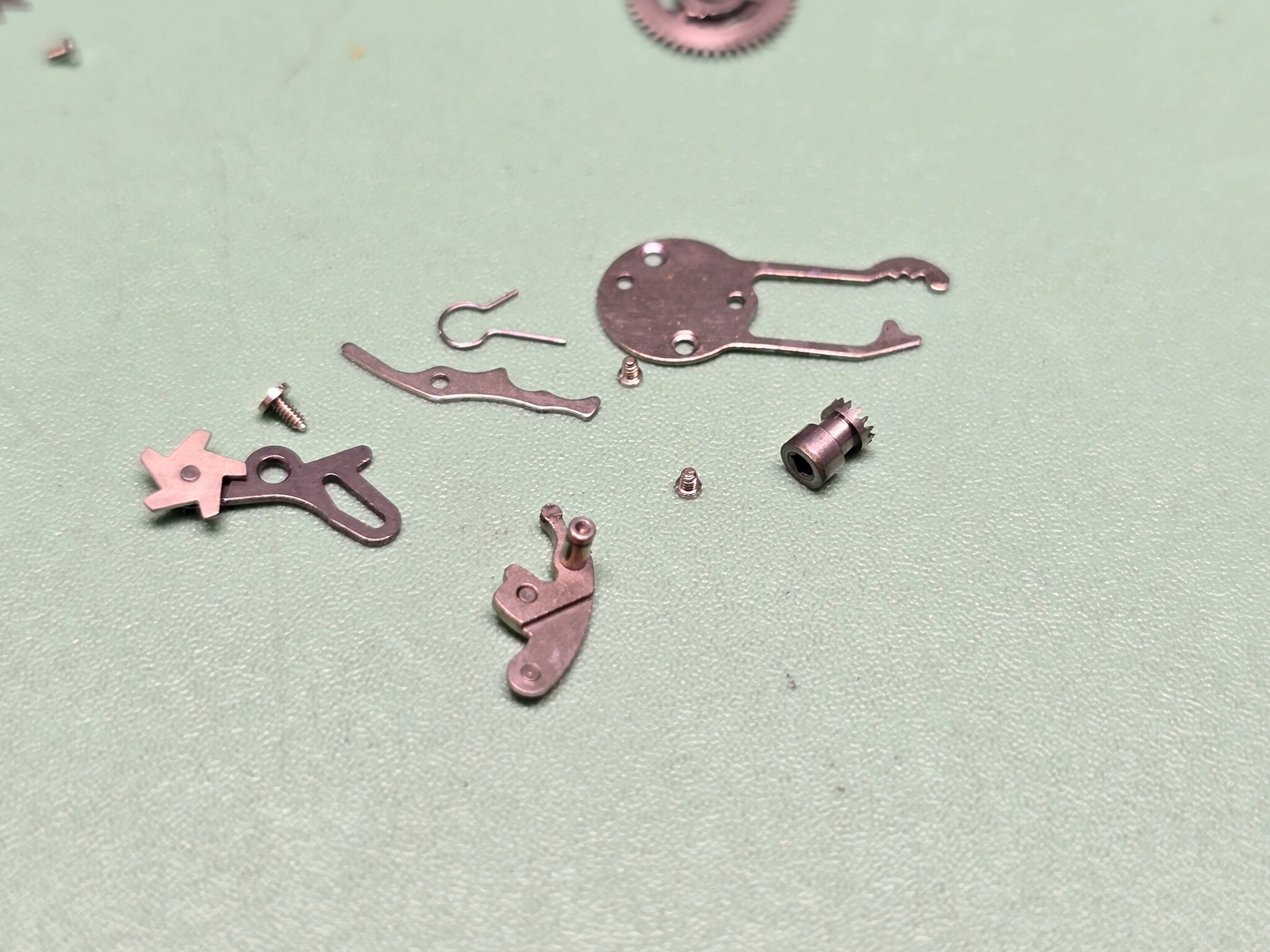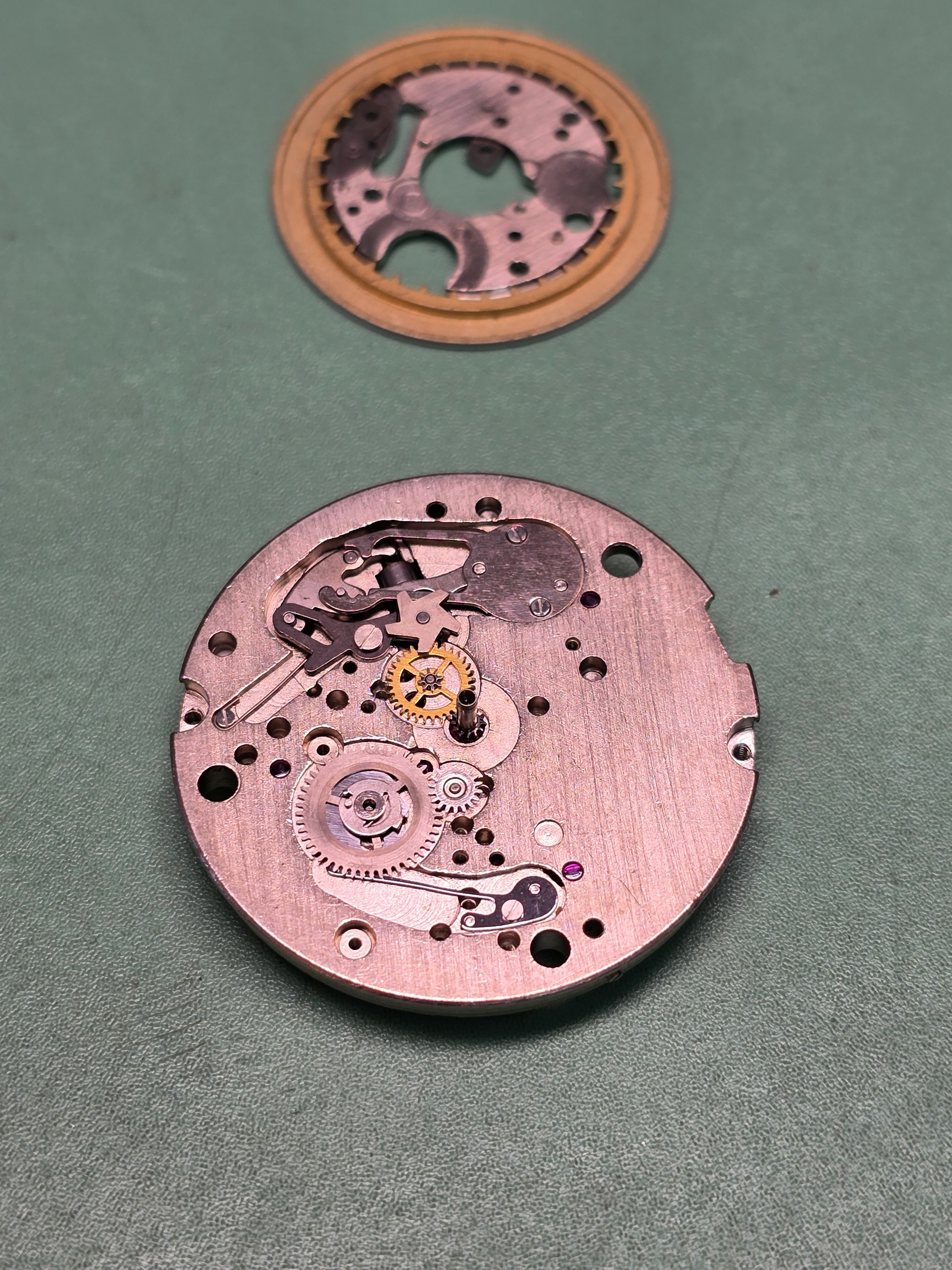 А дальше я не заснял процесс. Не потому, что не смог собрать, а потому что набежали клиенты и пришлось лавировать между ними и желанием оставить на верстаке уже готовые часы.