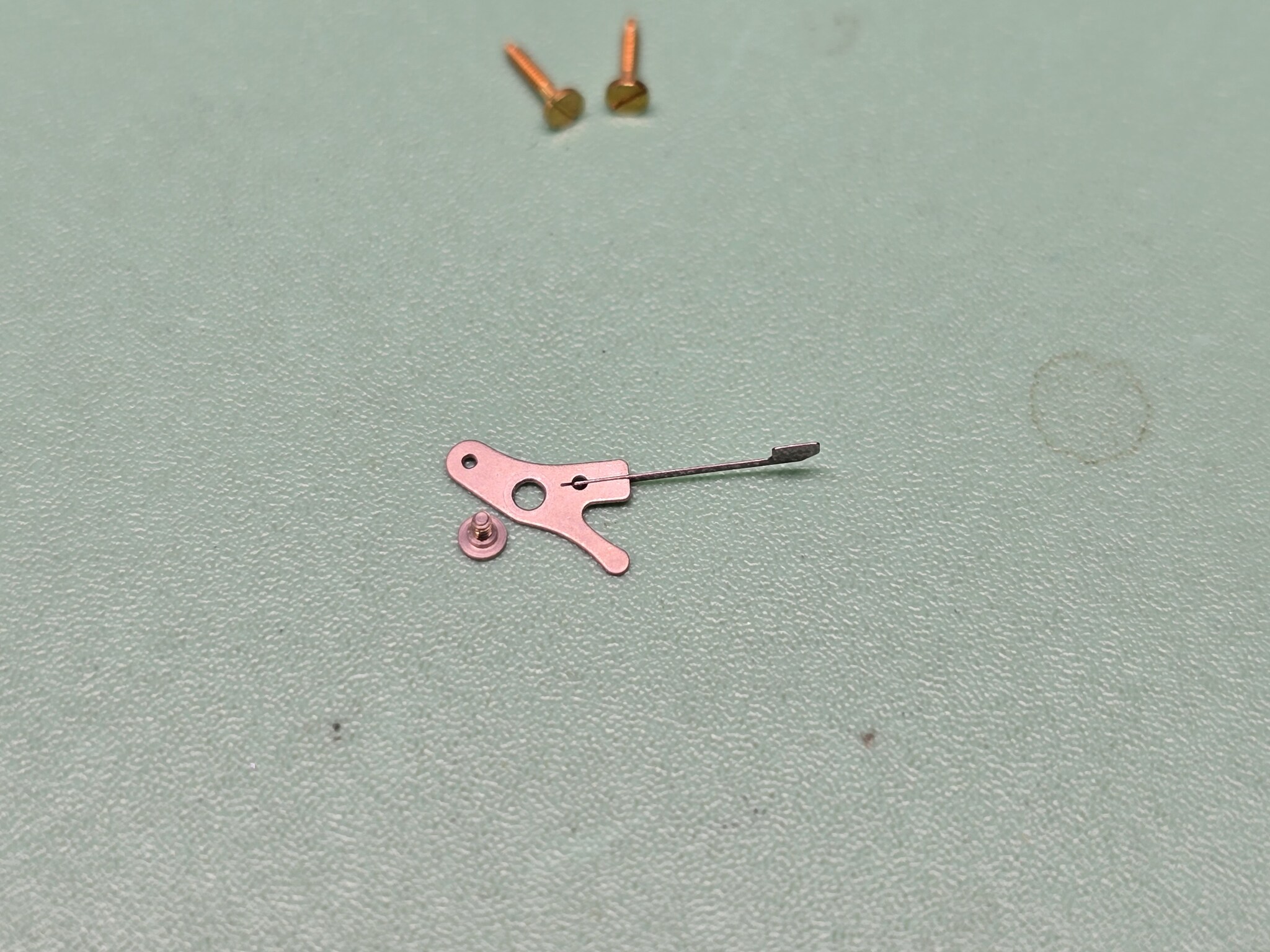 Тут у нас довольно прикольная деталь: стоп-секунда. Прикольно не само её наличие, а то, что она не размыкает электрическую цепь в часах, чтобы те остановились, а просто заклинивает колёсную передачу, как в механических часах.