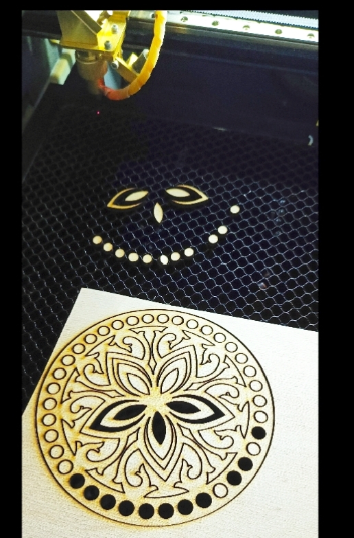 Мне очень нравится наблюдать за процессом резки. Звук работающего станка, огонек лазера, скорость появления рисунка - всё радует) причём скорость на самом деле маленькая, с более мощной лазерной трубкой резка будет гораздо быстрее.