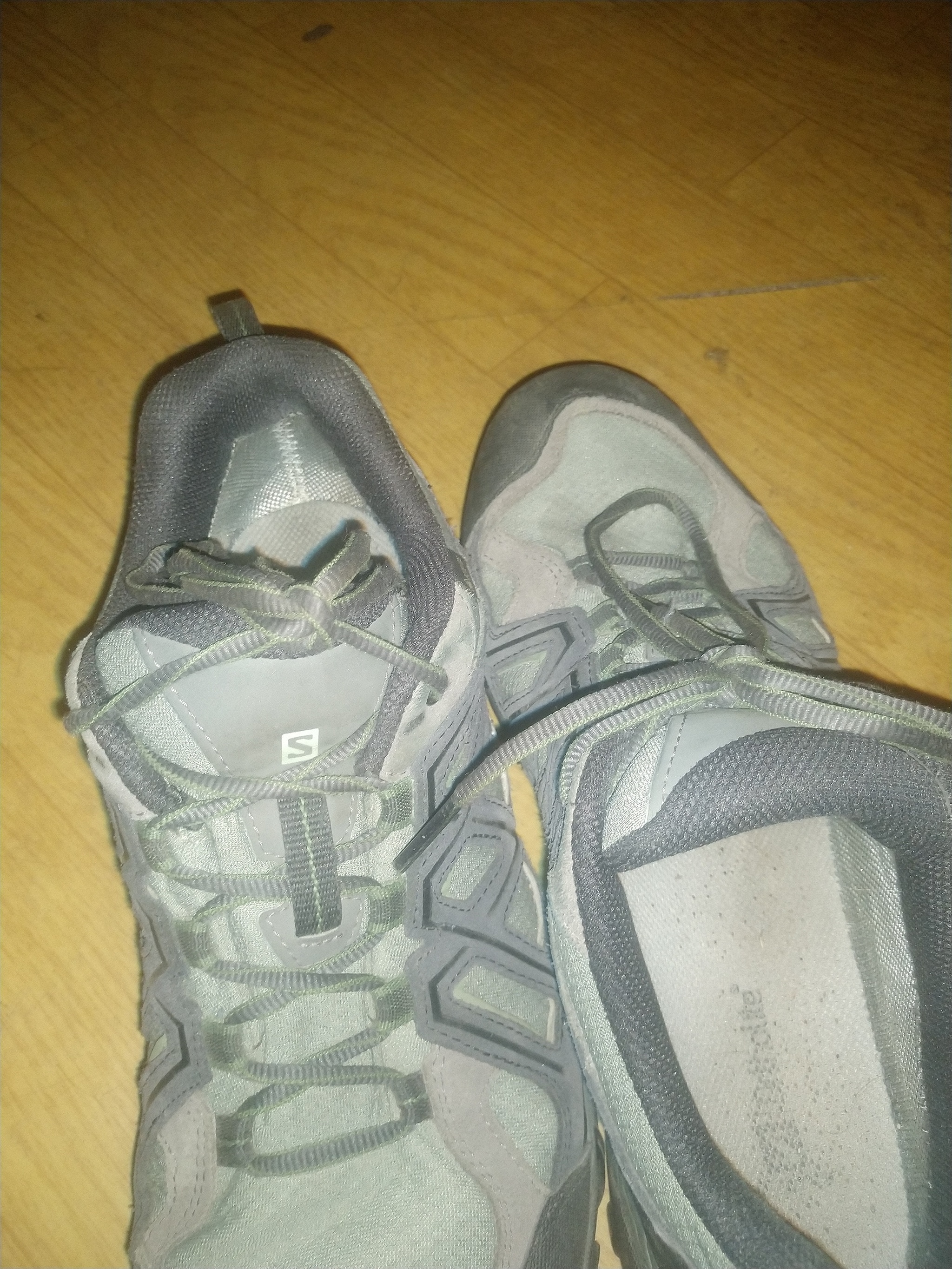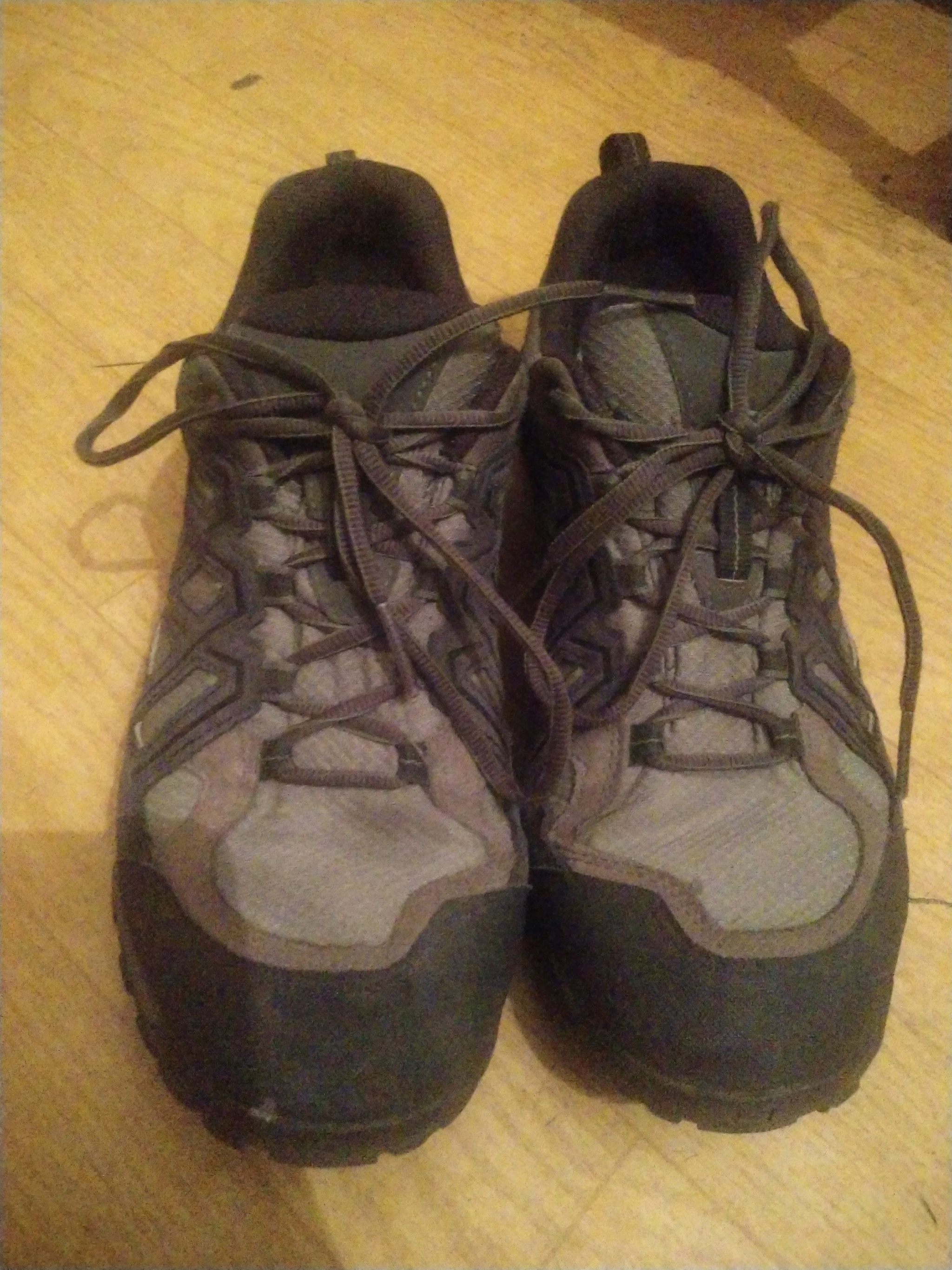 Бывает, вполне себе кроссовки ещё хорошие. К ним привык, лёгкие. Вроде так ничего не порвалось - ни подошва, ни швы не разошлись. А тут такая неприятность. Маленькую я обозначил стрелочкой, а большая и так видна.