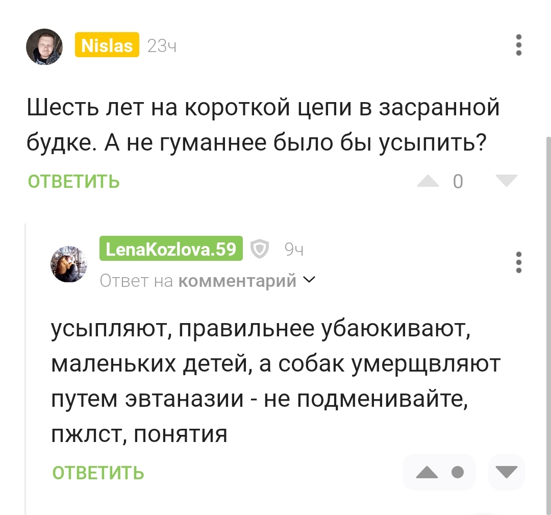 В ответ, неуважаемая @LenaKozlova.59, зачем то начала мне рассказывать как правильно называется умерщвление животных и