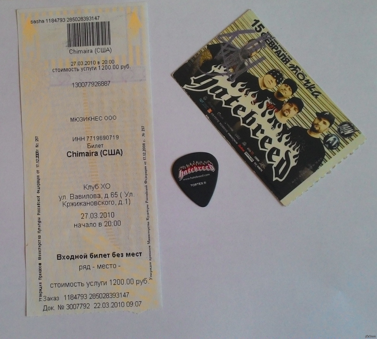 zanyallogin Решил разобраться в своем хламе 10 лет назад Кстати, концерт "Chimaira" так и не состоялся. Из-за проблем с визами, кажется. Но билет я все равно не выкидываю. А на "Hatebreed" помесились знатно! [моё] Концерт Hatebreed Ностальгия