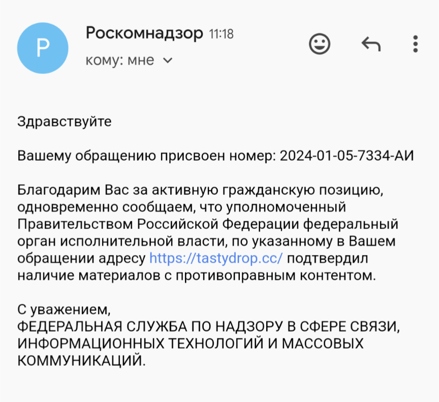 Решил я написать жалобу в Роскомнадзор