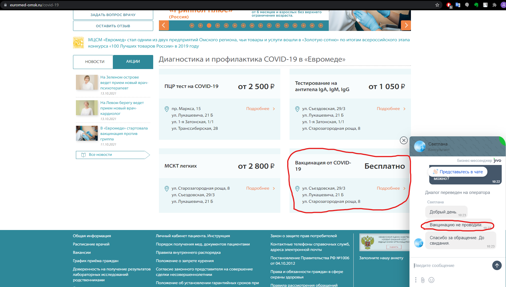 22 Rojdestvo Решил я тут вакцинироваться... 4 года назад "Мы хотим, чтобы нас сайт выпадал в поиске и к нам шли клиенты." "Мы не хотим оказывать бесплатные услуги, даже о которых заявляем." Медицина Вакцинация Омск Ещё 0