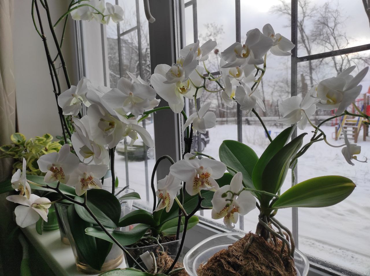 Я рада, что мой прошлый пост вам понравился. Вынесла из него пару советов. Создала орхам инсту и буду в постах на пикабу подписывать сорта, которые знаю. Еще просили показать пафики, но они все маленькие, еще не цвели. Потом обязательно покажу. А пока давайте смотреть на беленьких =)