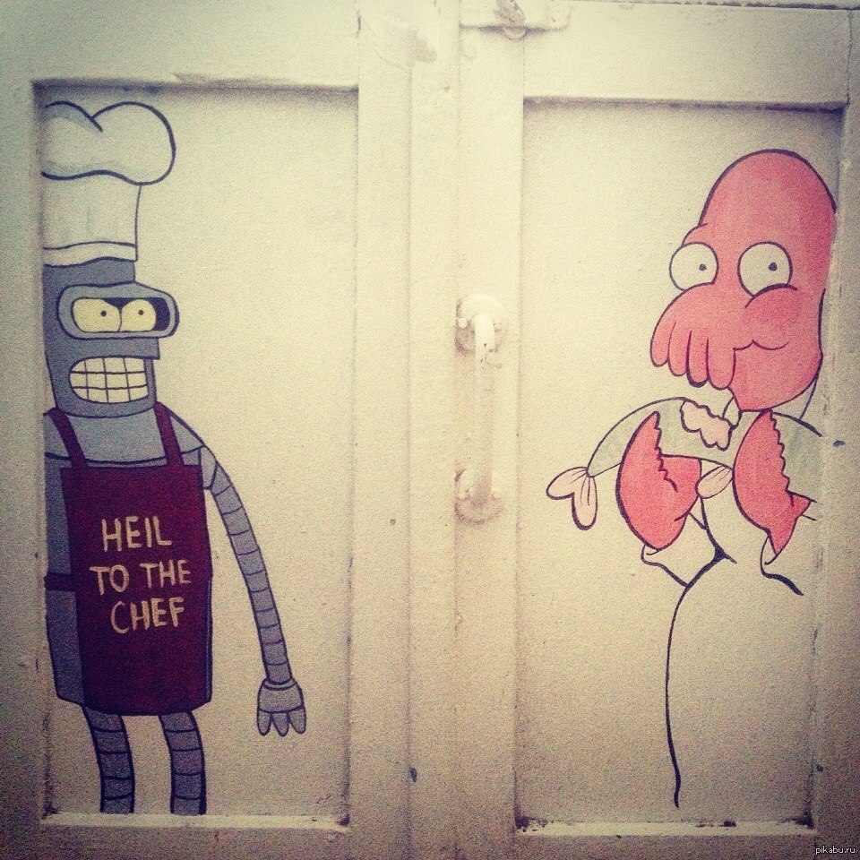 459 summers Решила сделать кухню чуть веселее) 10 лет назад Рисунок на стенной кладовке под окном акриловыми красками. Бендера нарисовала год назад, Зойдберга на прошлой неделе) [моё] Кухня Дом Футурама Зойдберг Рисунок Акрил Бендер (Футурама)