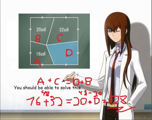 автор, я замечаю, что на ответы, типа "28" и "32" ты не реагируешь никак. значит ли это, что один из ответов - 28, а второй - 32? или мне продолжать искать что-то другое?