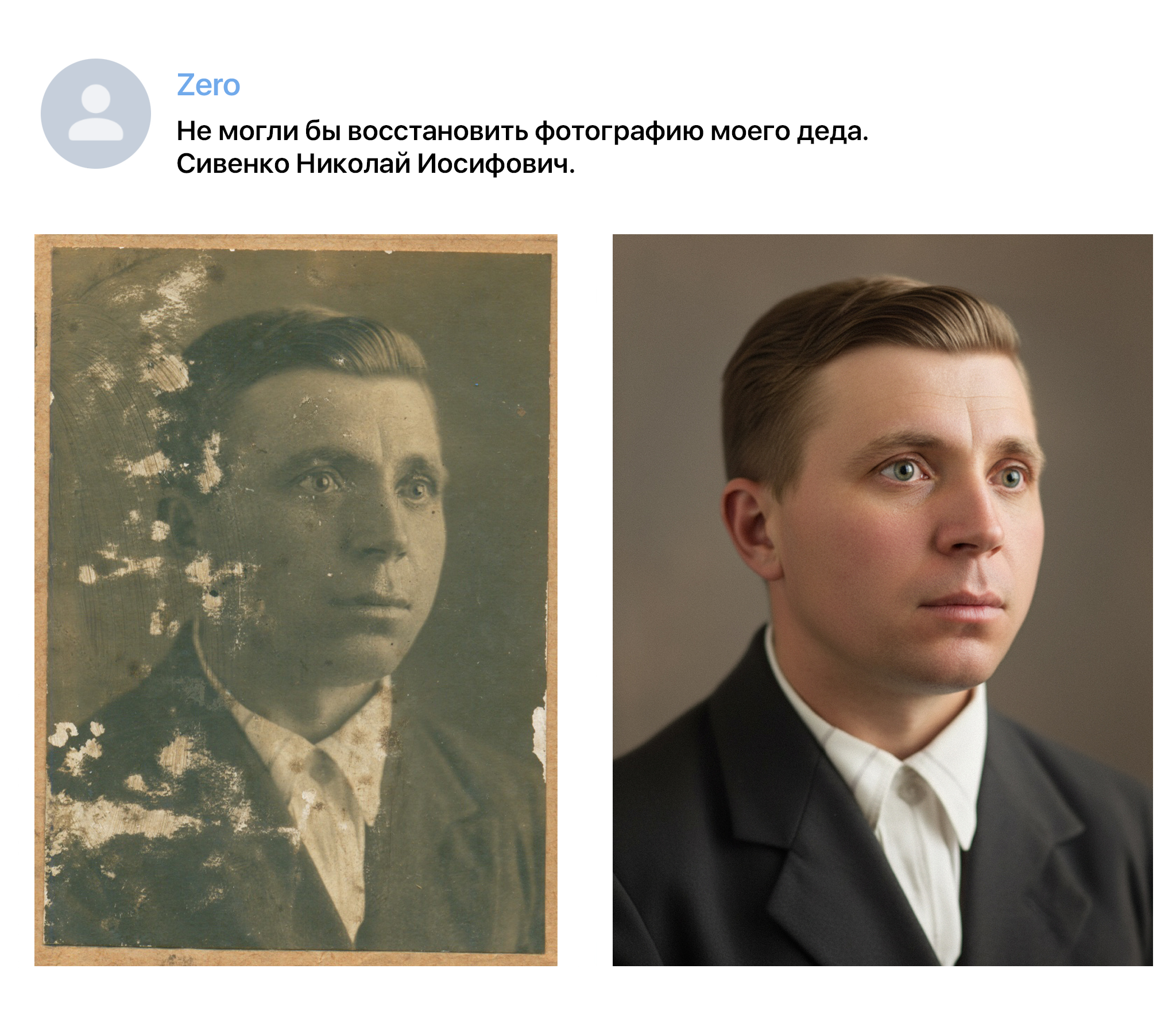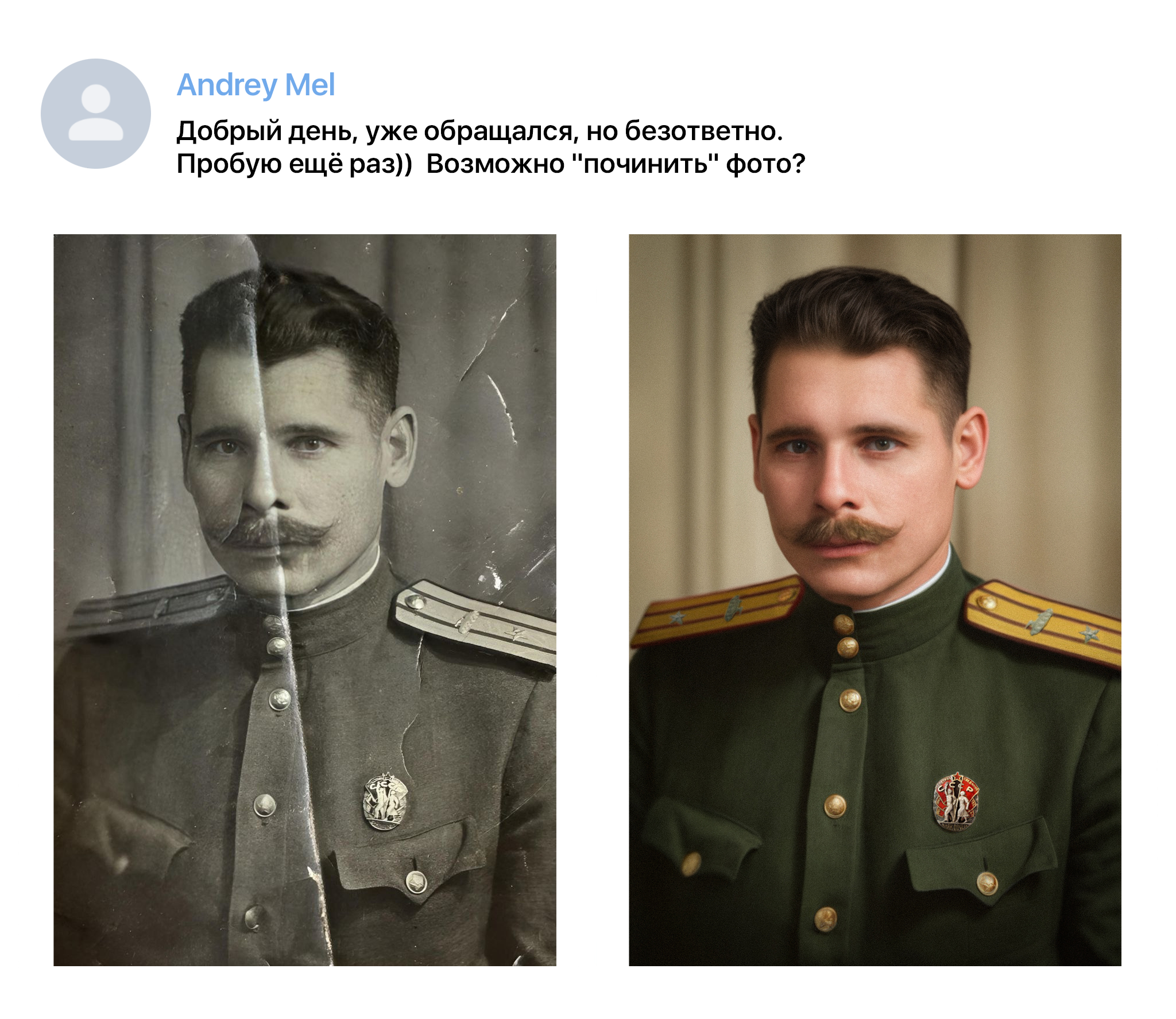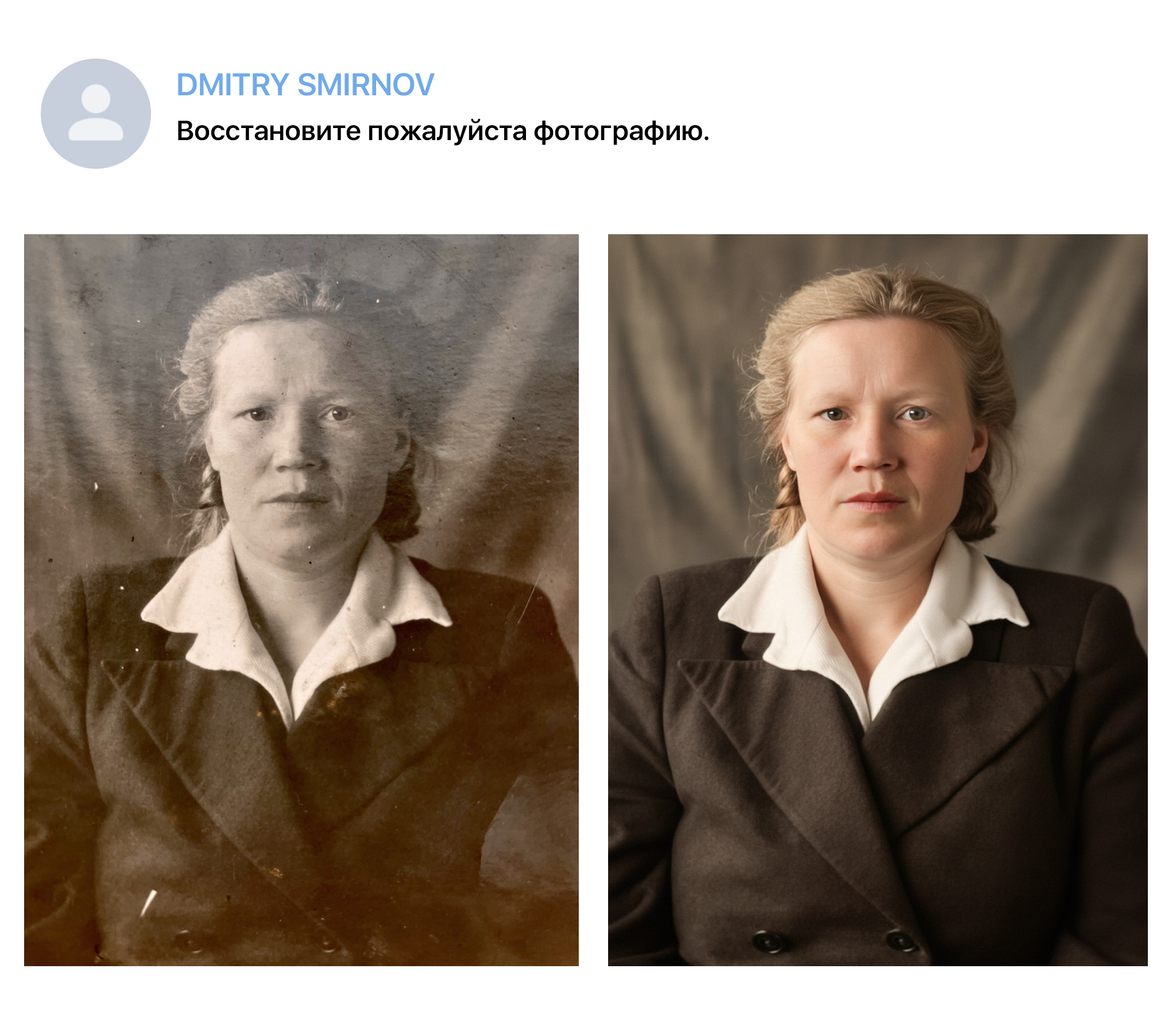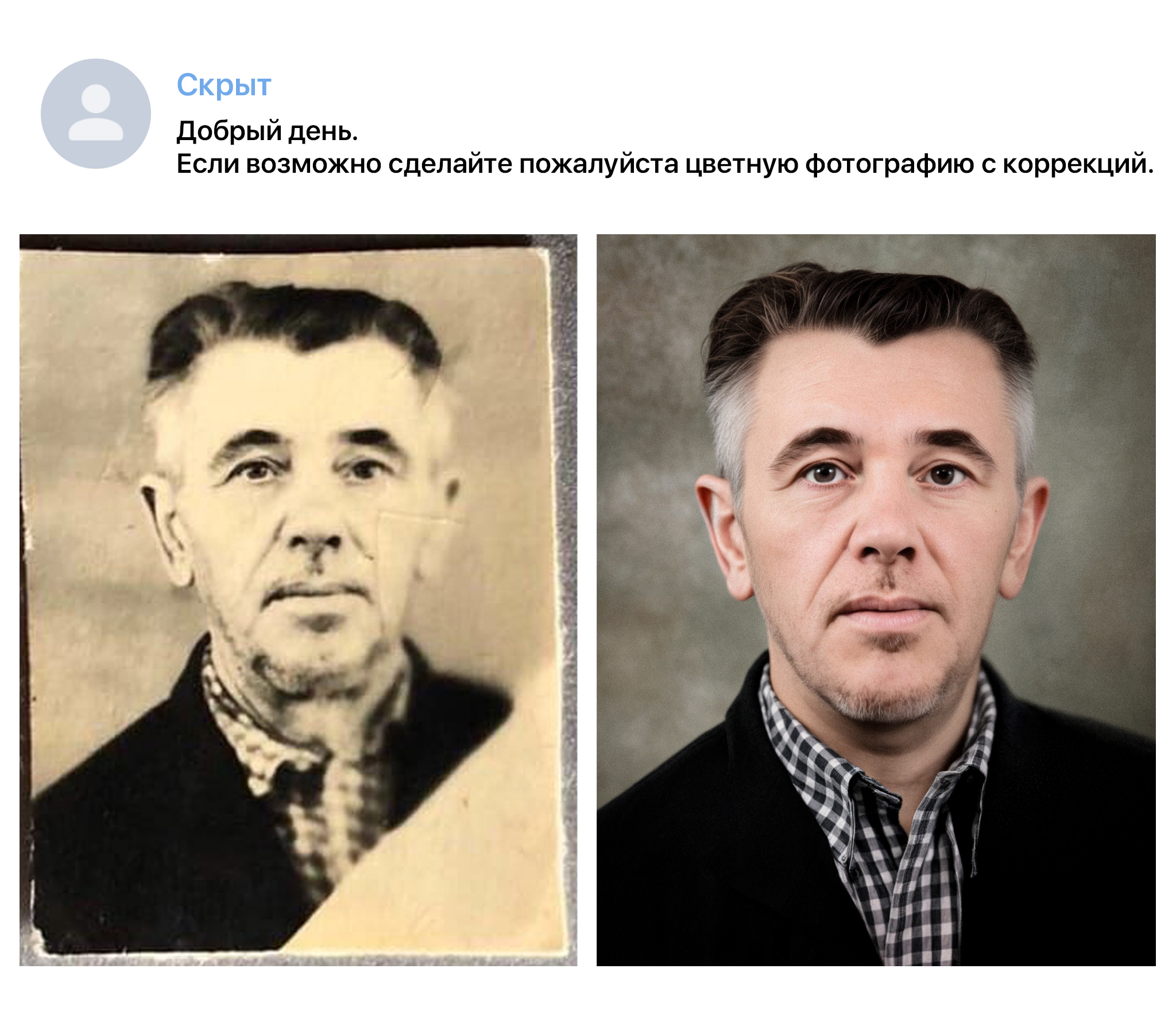 Я занимался обработкой фото ещё до появления нейросетей, и сейчас это такой же инструмент, как и Photoshop, которым я по-прежнему пользуюсь для восстановления фото, чтобы сохранить 100% сходство после нейросетевых улучшений.