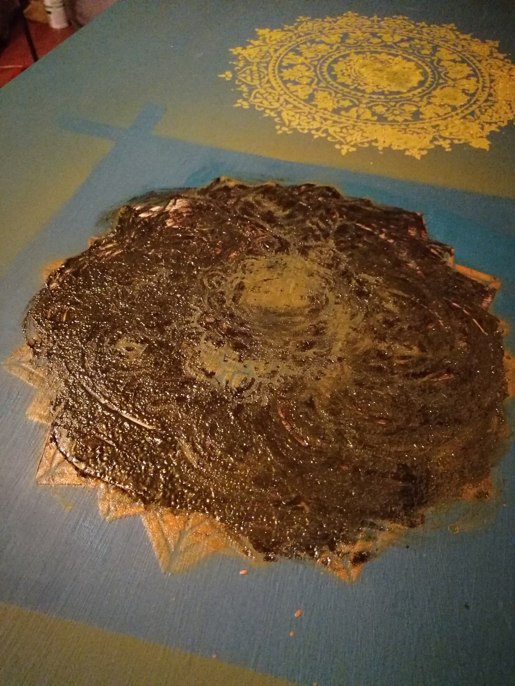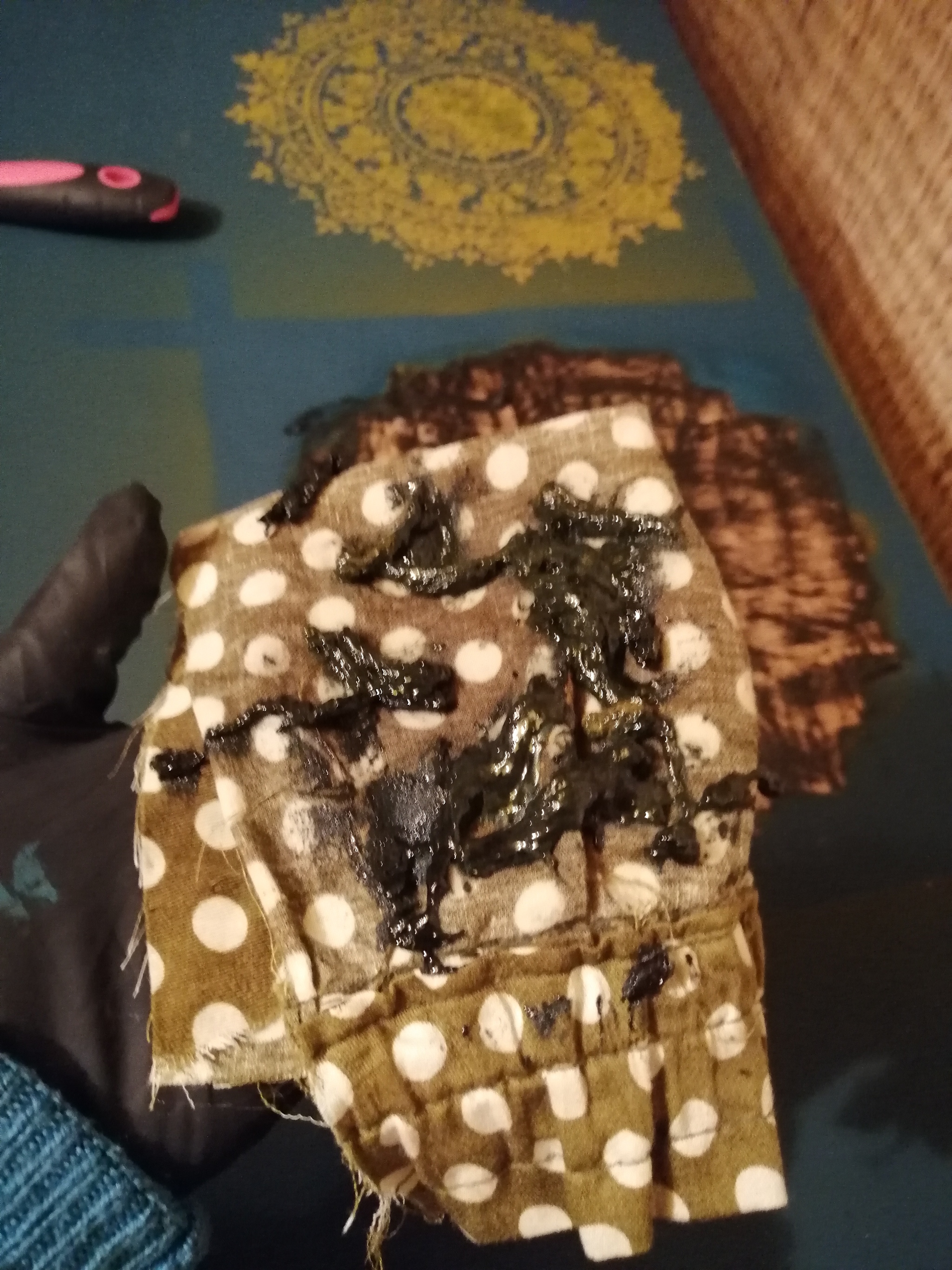 После нанесения этого оранжевого счастья на меловую краску, произошёл биг-бада-бум. Нет. Просто всё вспенилось и почернело. Что нанесло моей психике непоправимый ущерб.
