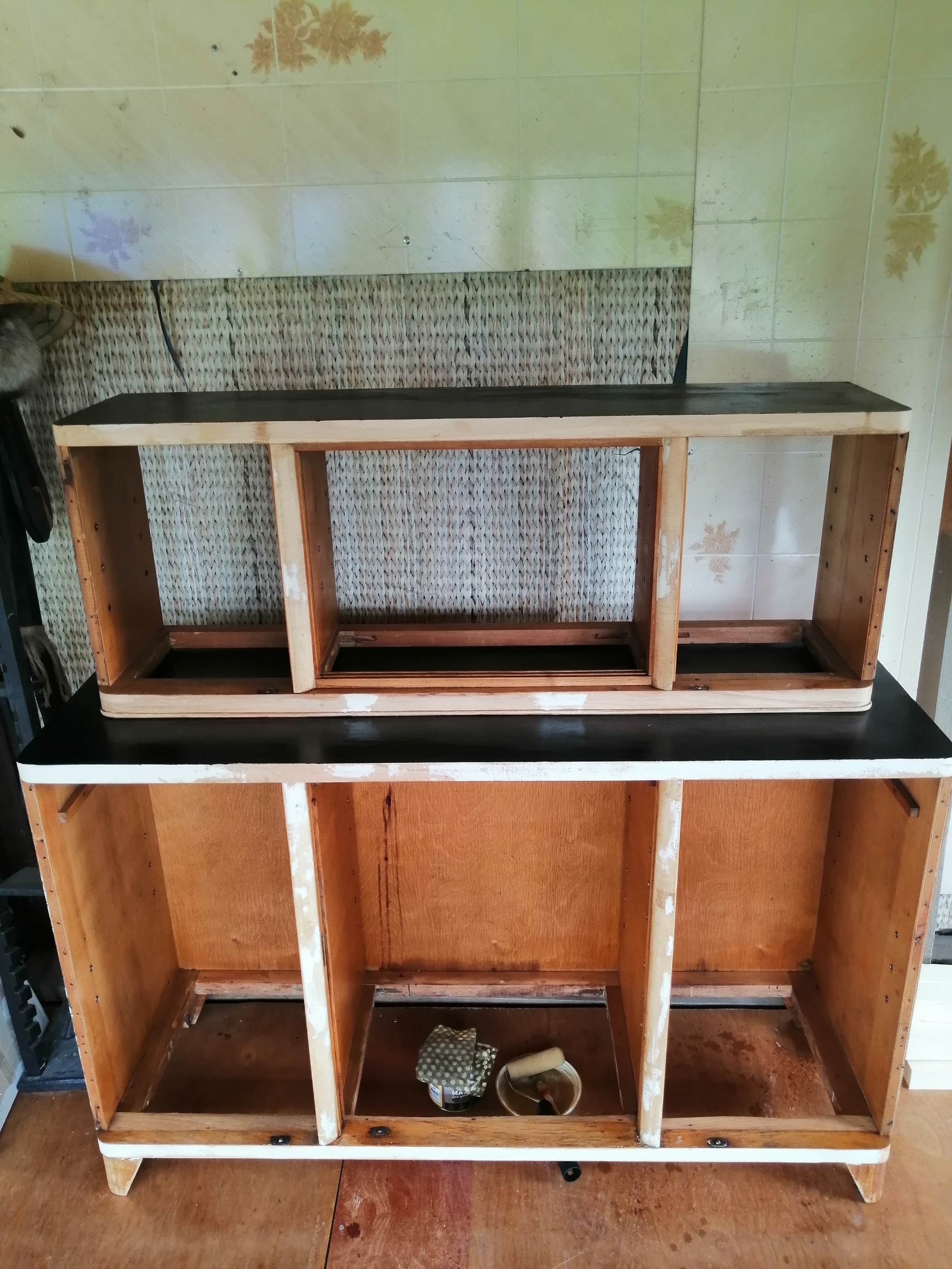 Посмотрев на эти черные столешницы, я пришла к выводу, что будет какая-то хрень. И снова "переобуваюсь" в ходе процесса покраски.