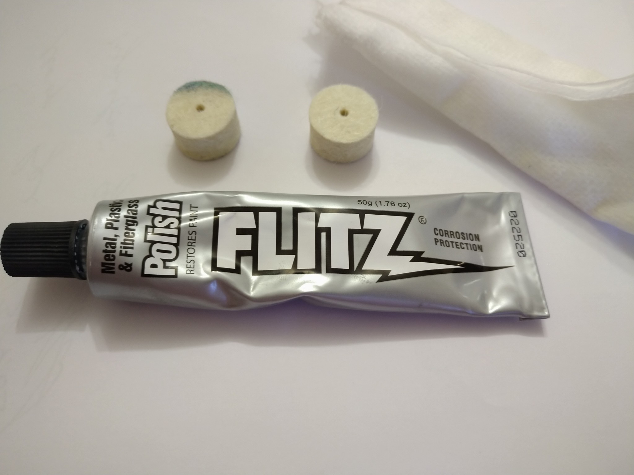 Для шлифовки была выбрана полировочная паста FLITZ, войлочные патчи для чистки ружей и ветошь.