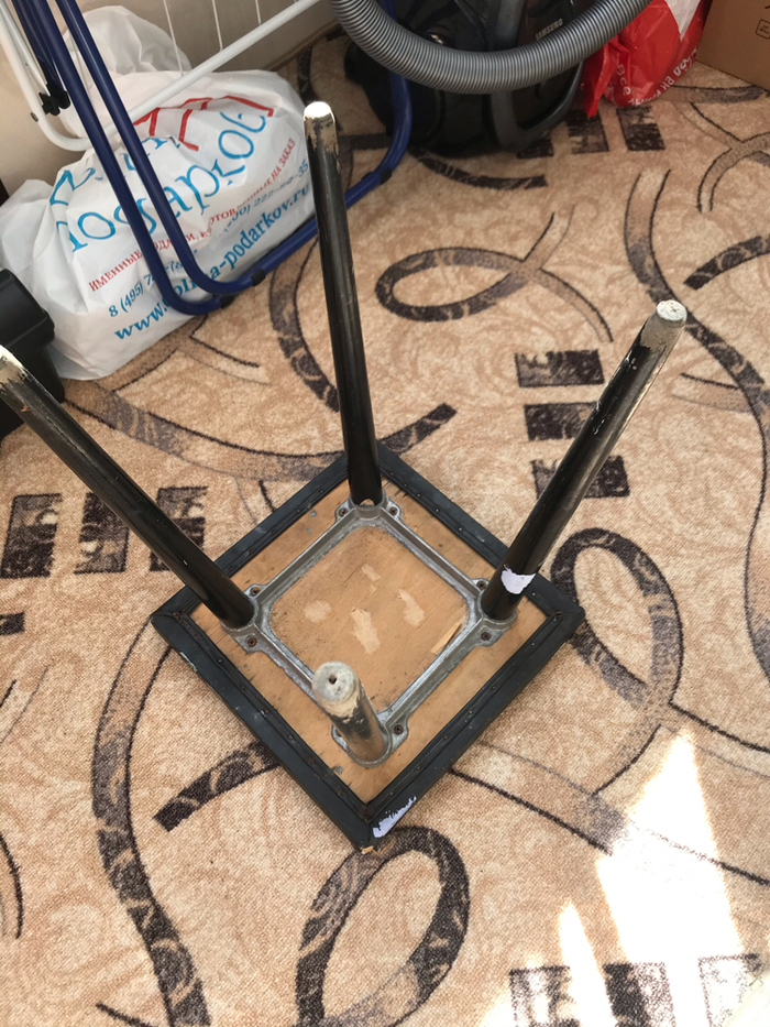 Процесс разбора не фотографировал, больше всего геморроя доставили гвоздики, которые просто были съедены ржавчиной и отлетали только шляпки, сама по себе доска оказалась нормальной, отверстия в ней забил соринками и загрунтовал, крепление ножек тоже зачистил и загрунтовал