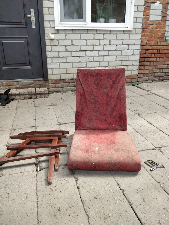 Дома, среди хлама, валяется без дела пара советских кресел. Я подумал, что можно вдохнуть в них новую жизнь. Опыта в перетяжке мебели я не имею, но судя по видео из ютуба это не так уж и сложно, главное стараться. Вот сам подопытный: