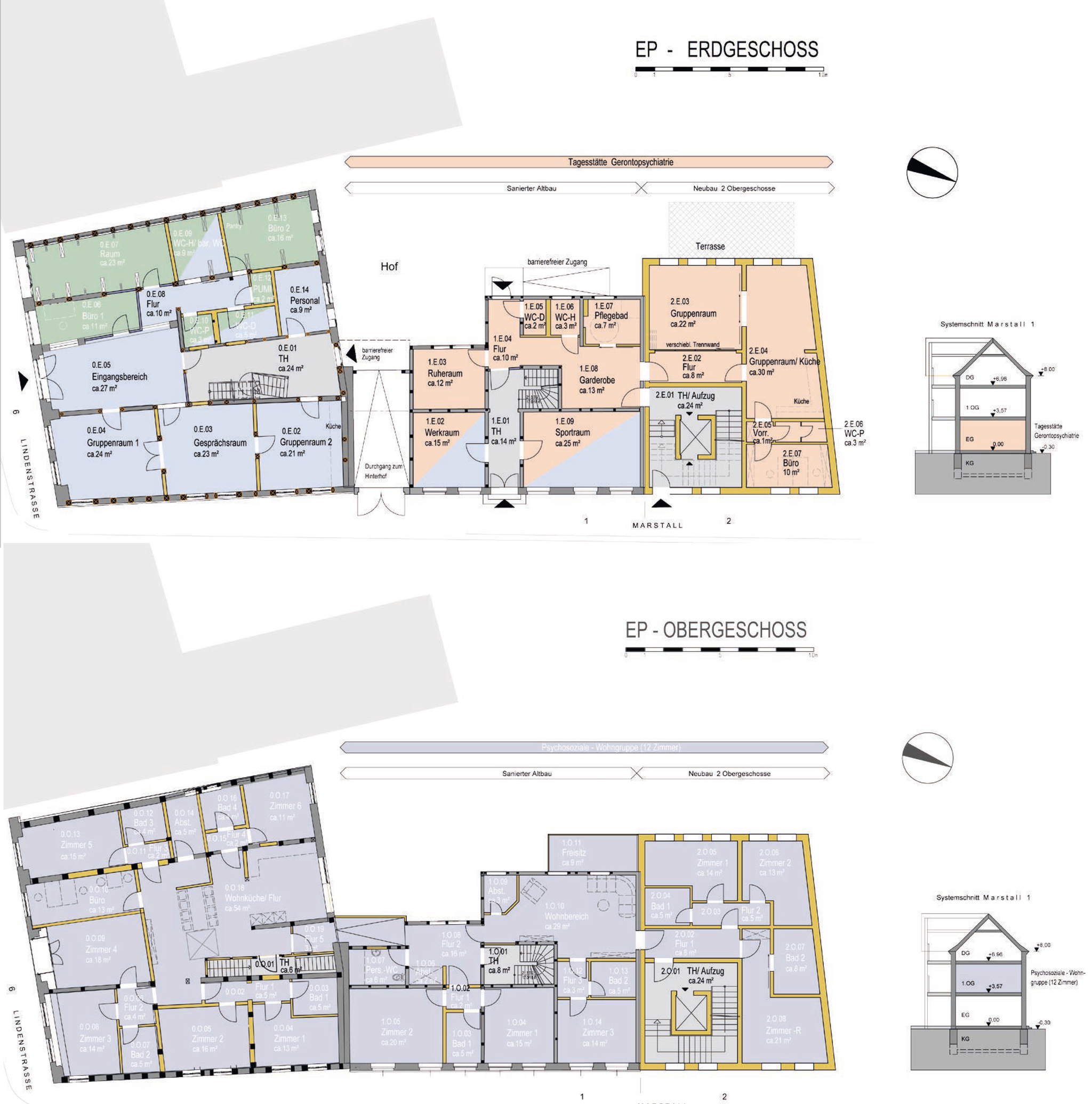 В 2015 году город выкупил участки Marstall 1 и 2, снес стоящее на нем полуразрушенное здание, освободив место для нового строительства, и расширил концепт на два соседних участка и прилегающую территорию двора. Начиная с 2016 года, начался новый поиск решения для использования этих зданий. Рассматривались всевозможные варианты размещения офисов, магазинов, врачебных помещений, одновременно проводилась работа по изучению от исследователей и реставраторов.