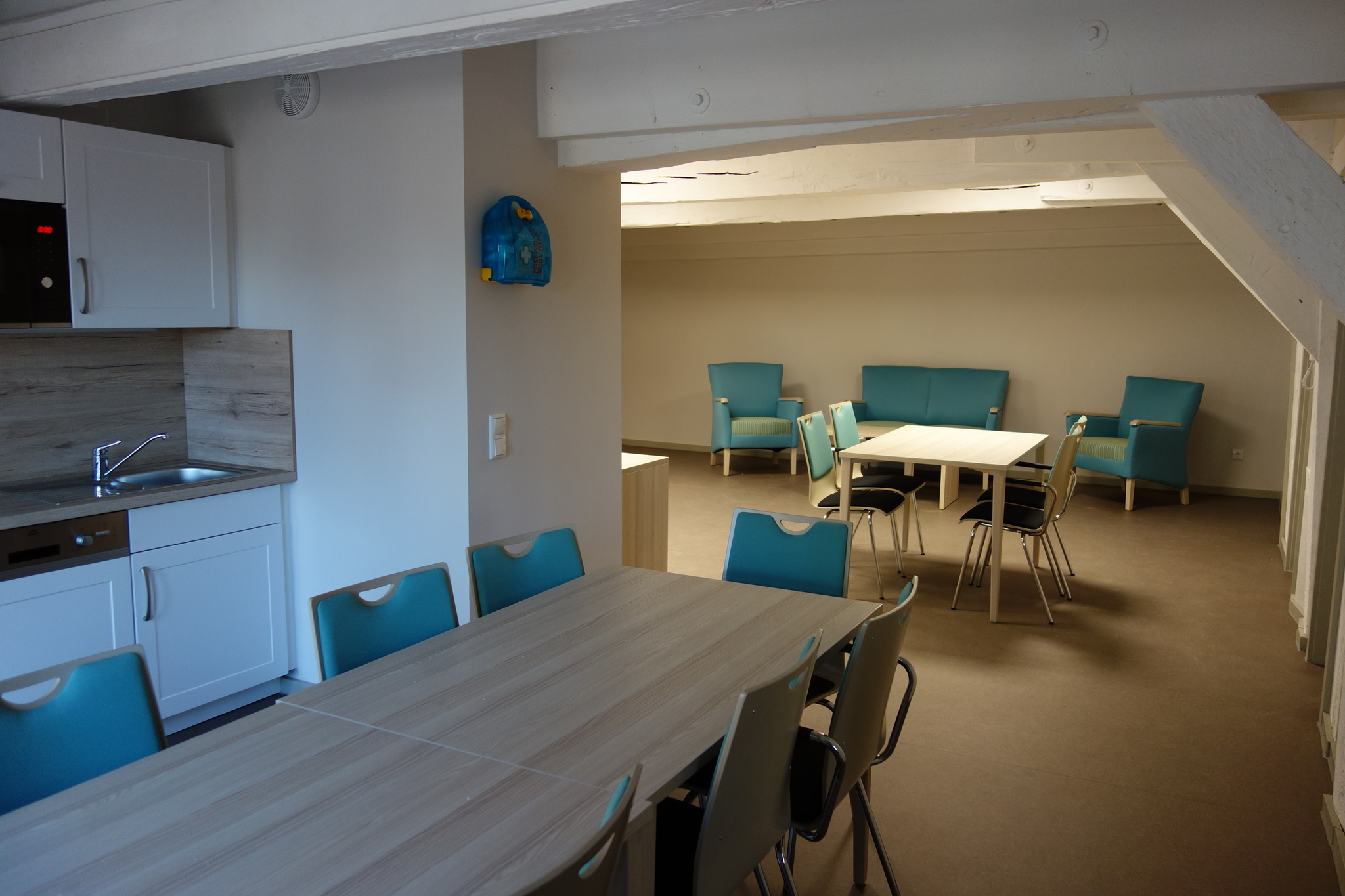 И наконец к концу года появилась окончательная идея: основным долгосрочным пользователем стало предприятие, занимающееся поддержкой и обучением людей с психическими и физическими нарушениями. В отреставрированном помещении предполагалось расположить жилые комнаты для таких людей, а также общественные зоны, где социальные работники проводят для них групповые занятия. На первом этаже, планировалось разместить бюро и помещения для сотрудников социальной службы, спортивное помещение и мастерские.