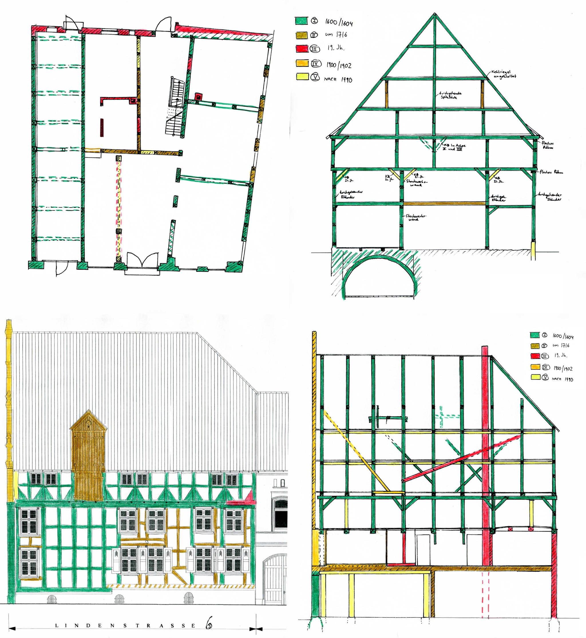 В 16 и 17 веках такие планировки вышли из моды, им на замену пришли многочисленные, небольшие по площади помещения, а к началу 18 века дом сменил владельца и получил перекрытие над первым этажом, которое сохранилось и сейчас, бОльшие окна и камин. В пространстве мансарды было встроено колесо и площадка для поднятия грузов наверх прямо с улицы.