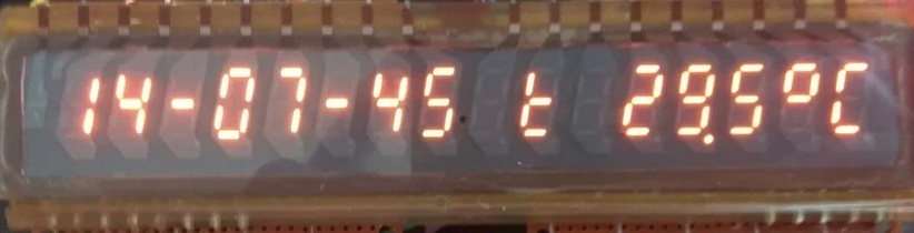 В часах реального времени DS3231 имеется термометр, его показания периодически выводятся на индикатор вместо даты, месяца и года.