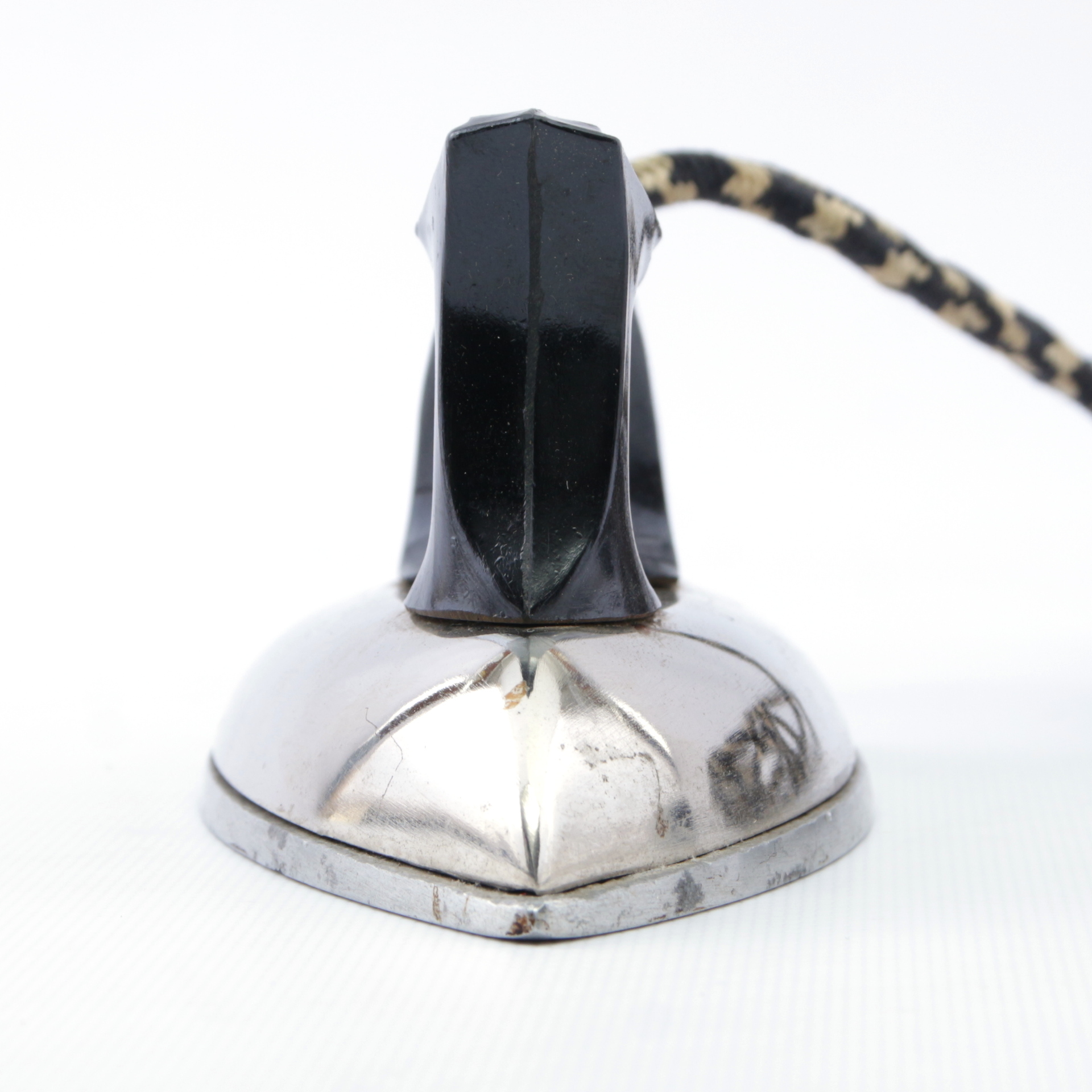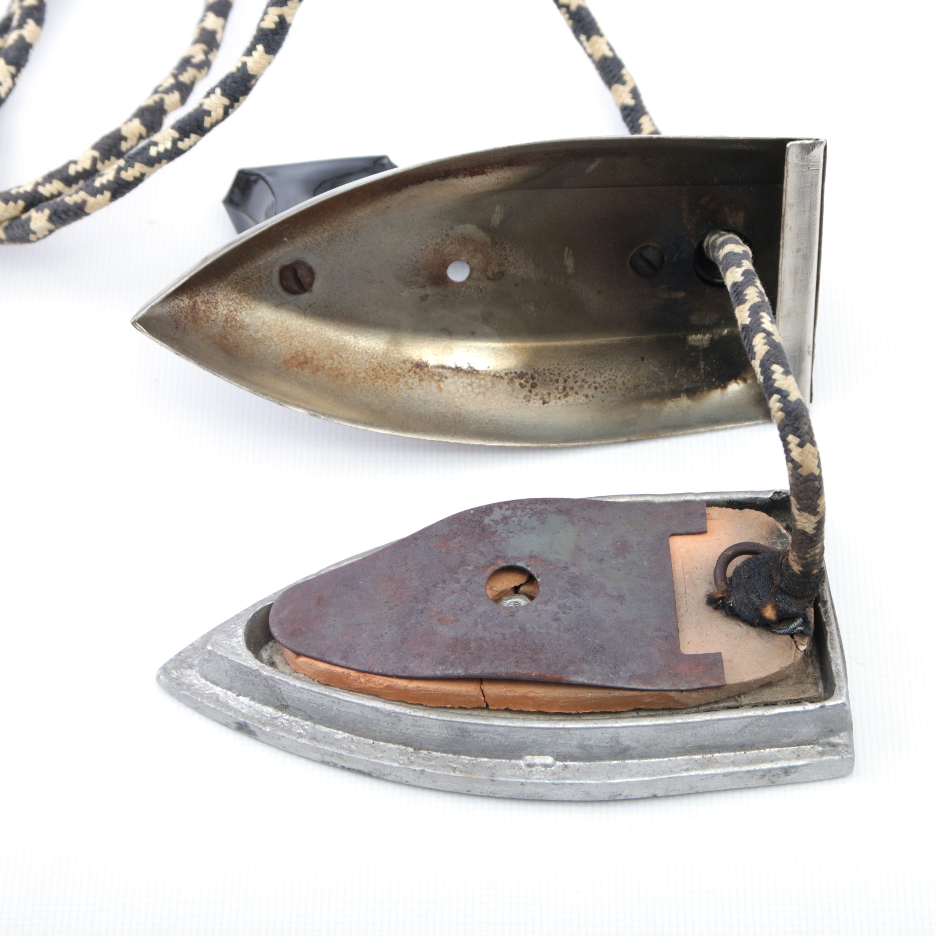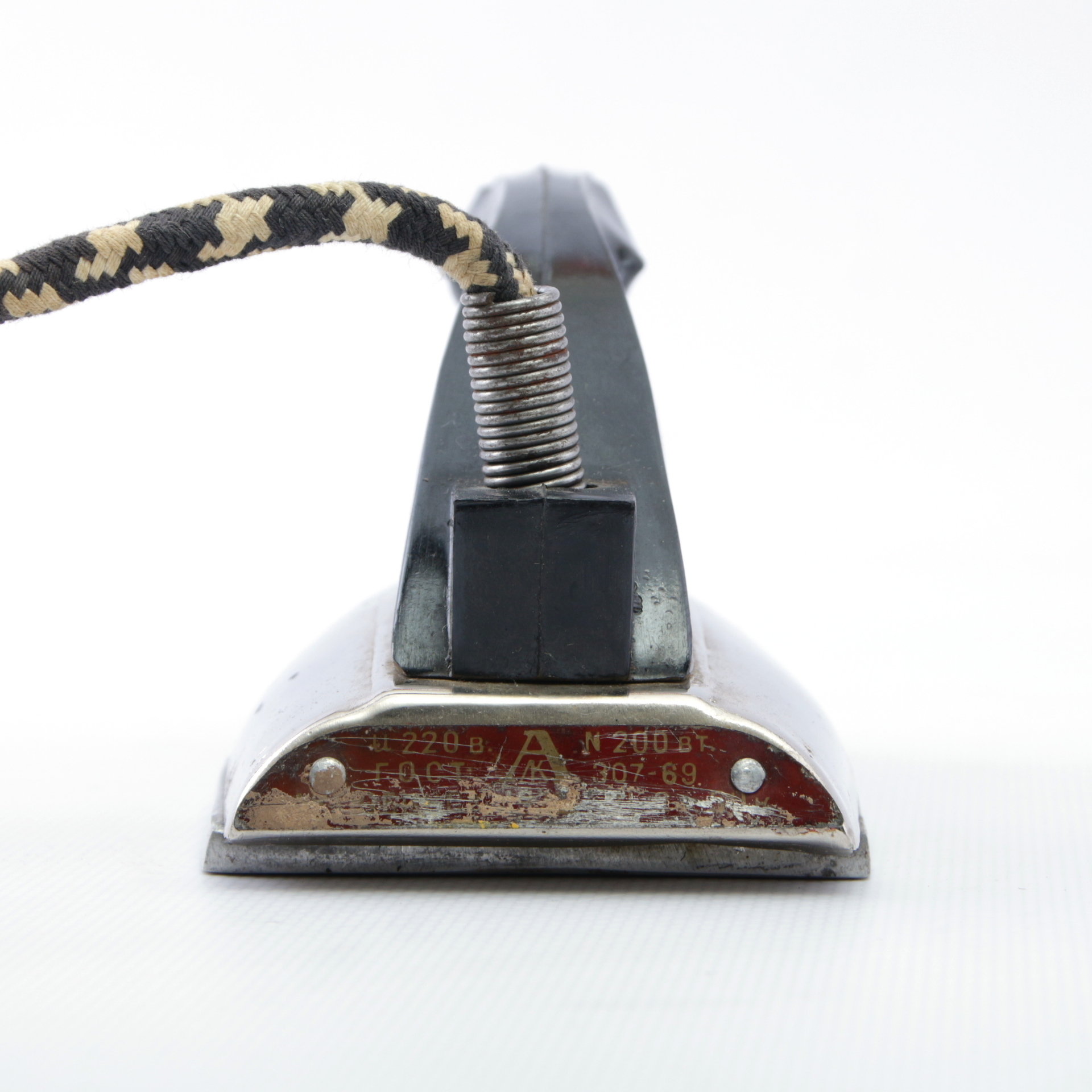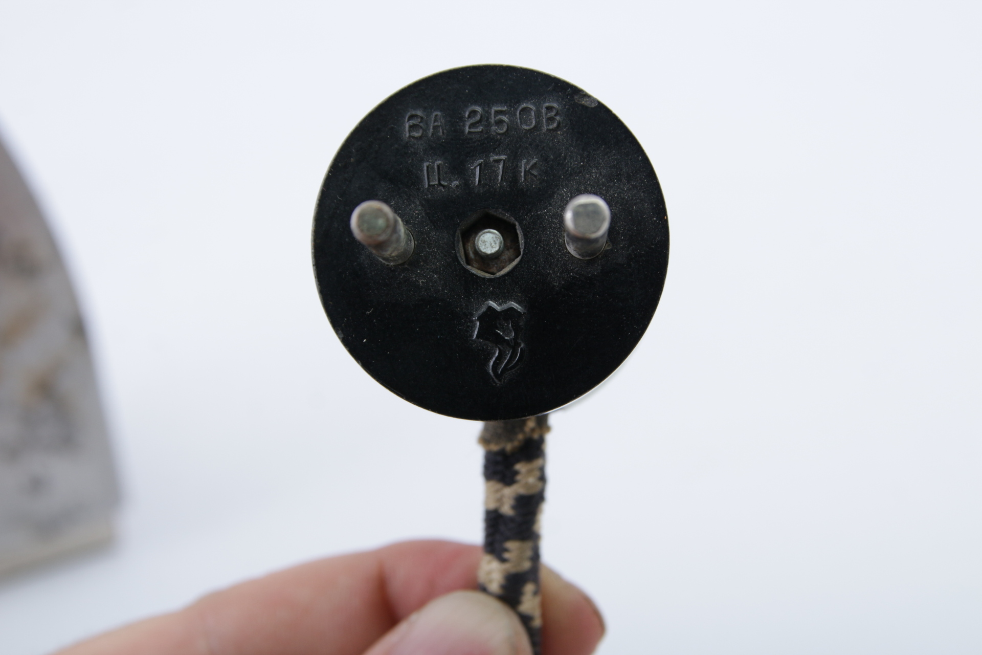 Утюг самый простой - без защит и терморегуляторов. Просто включил - и он греется. Обратите внимание на вилку - она довольно экзотичной формы. По клейму в виде цветка на вилке опознаем КзылТУ: