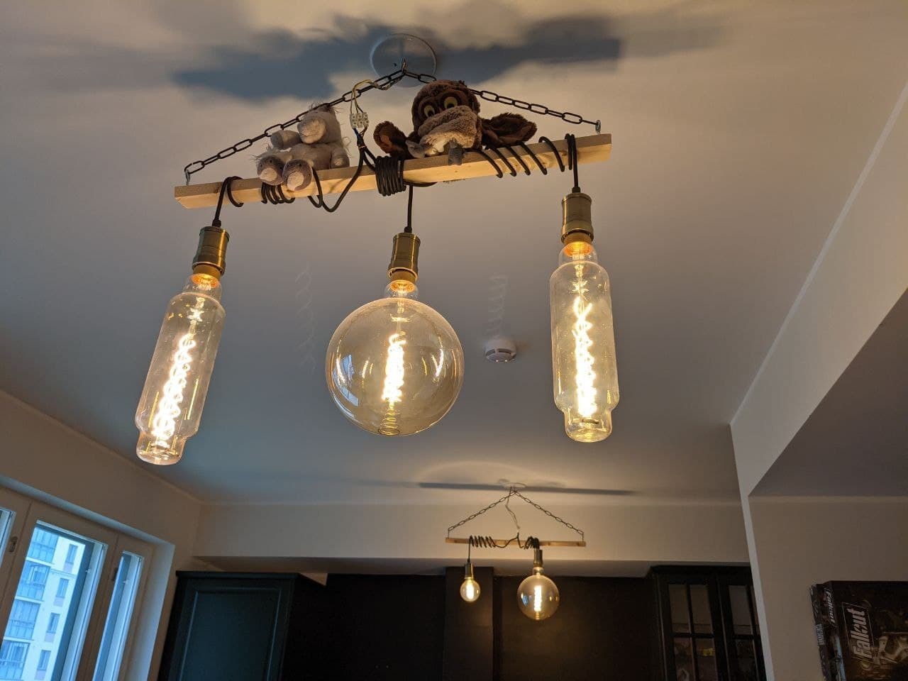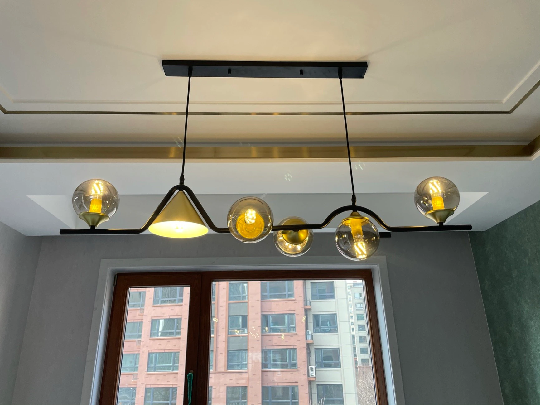 Дизайнерская люстра с основанием на высоте 7 метров от пола, на косом потолке