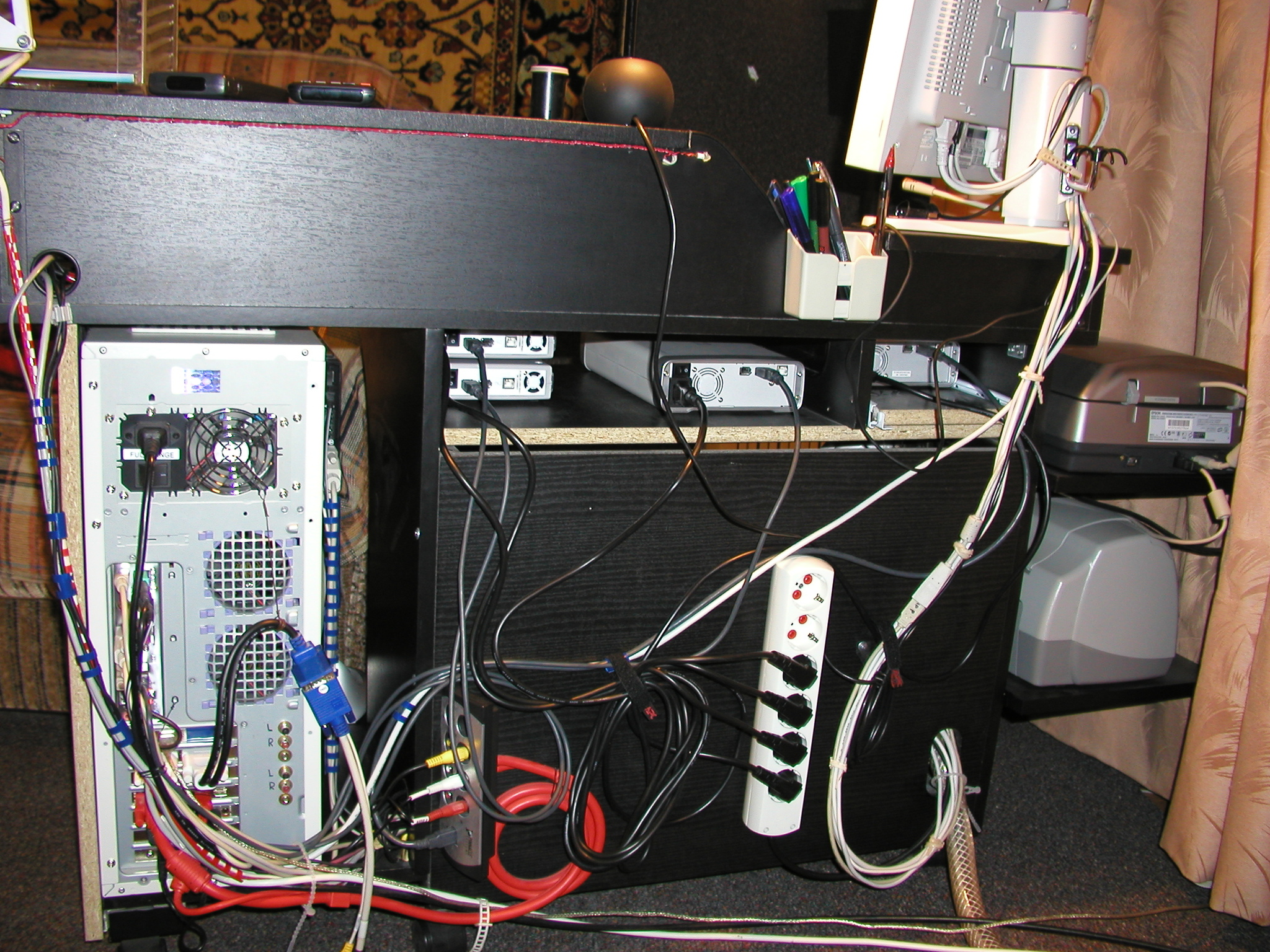 У меня с розетками проблем не было) Да и провода не напрягали. Фото как раз тех времён. Проводов и розеток ещё мало)