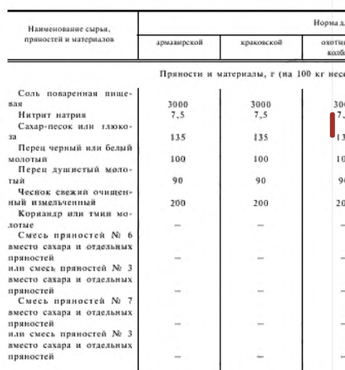 Соль нитритная (содержание нитрита 0,5-,06%) - 18 грамм /кг можно50/50% с повареной.