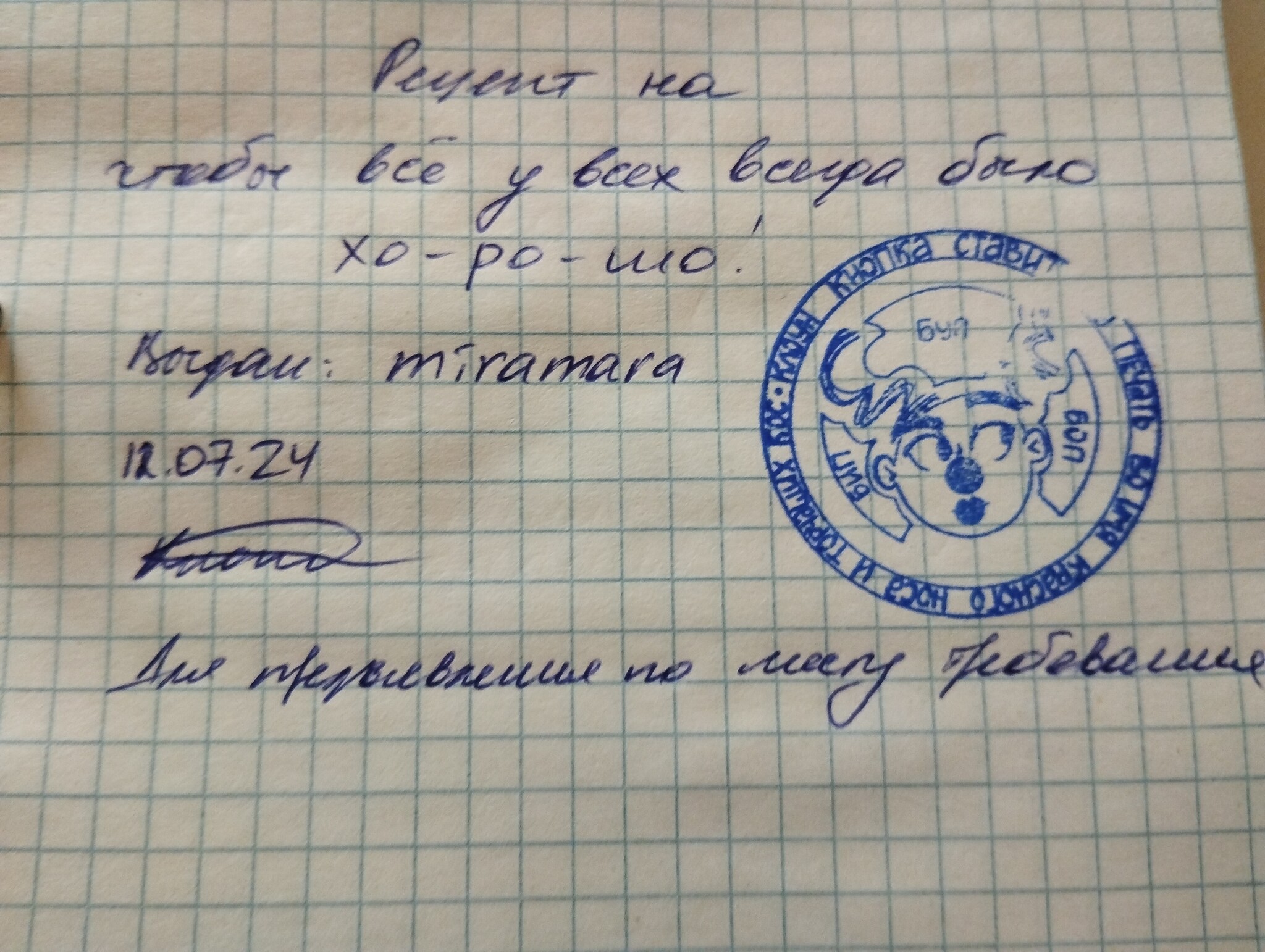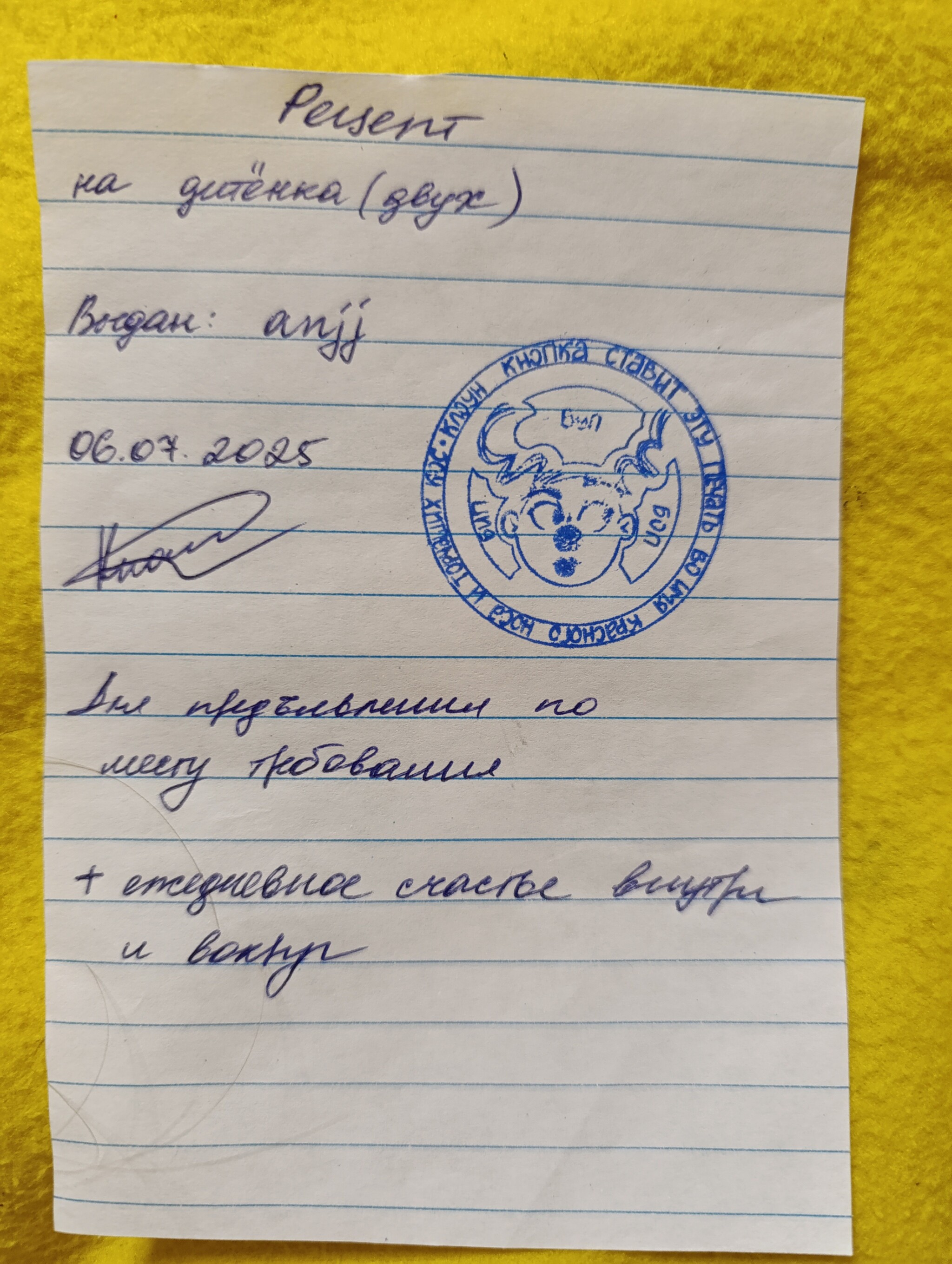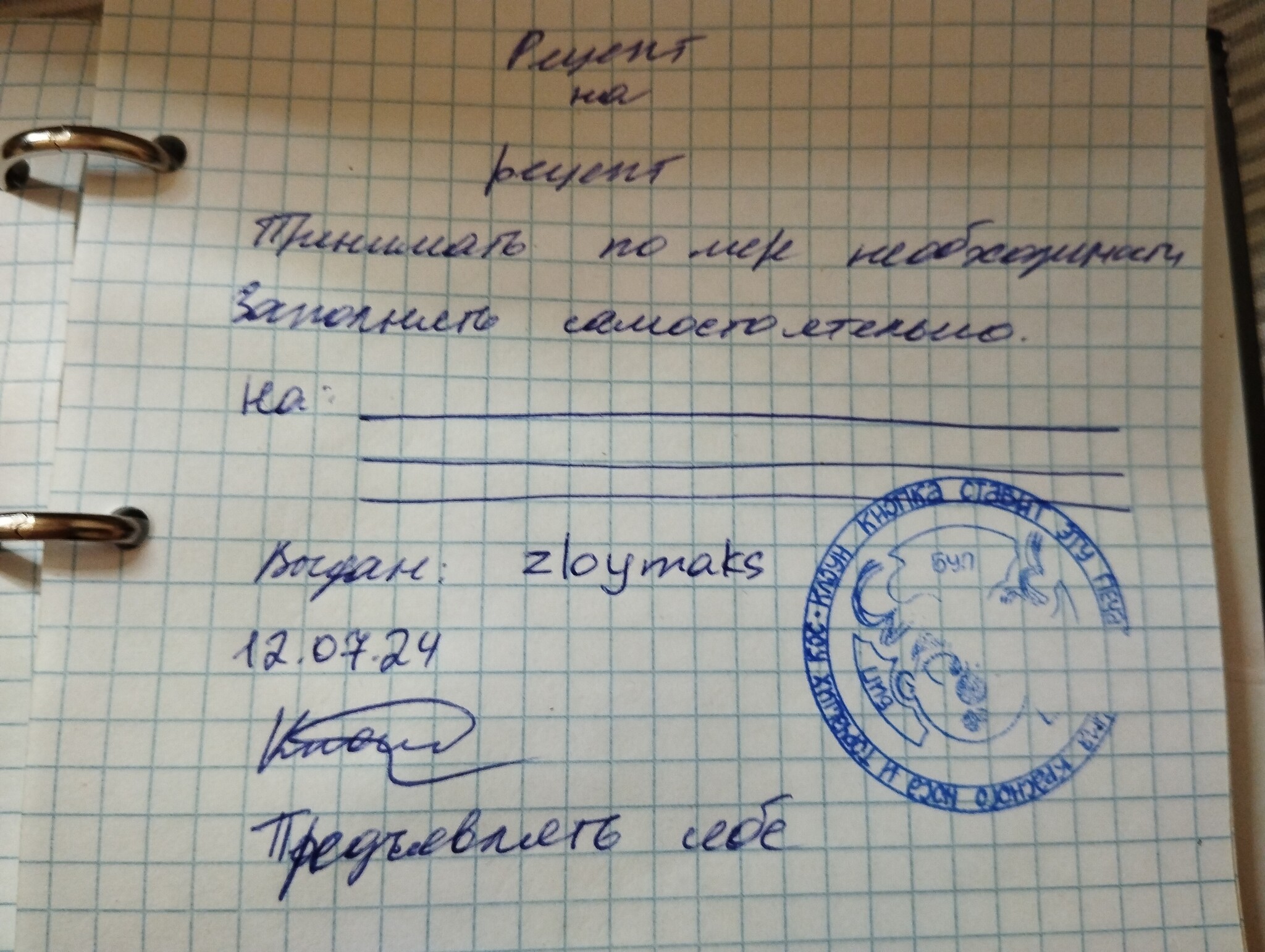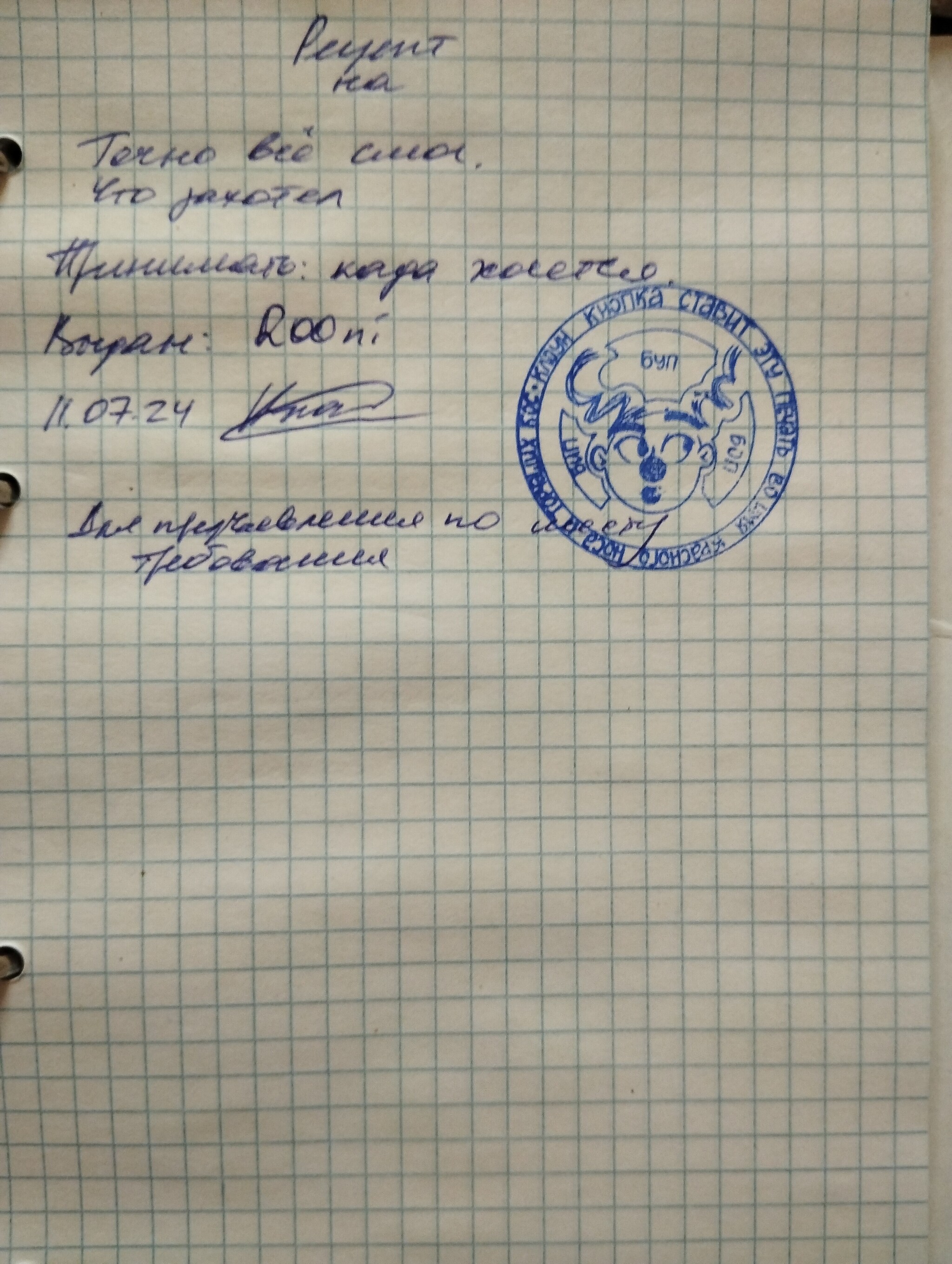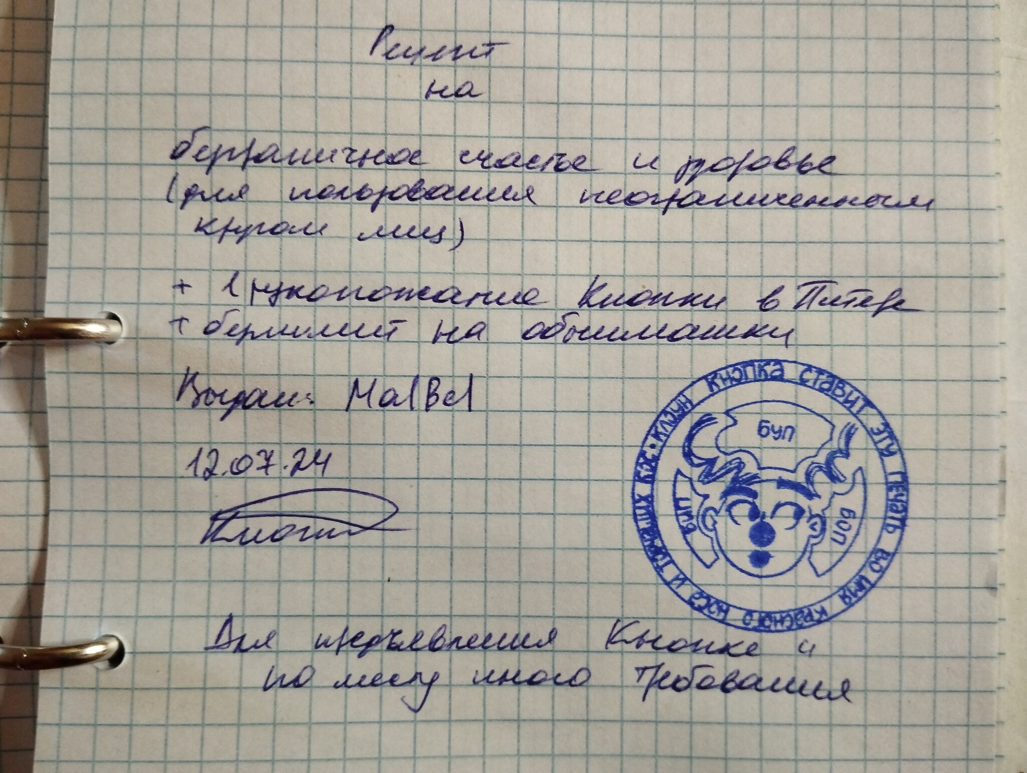 -Тут уж я не знаю. Мое дело написать. Поэтому вот тут внизу пишу- предъявлять по месту требования.