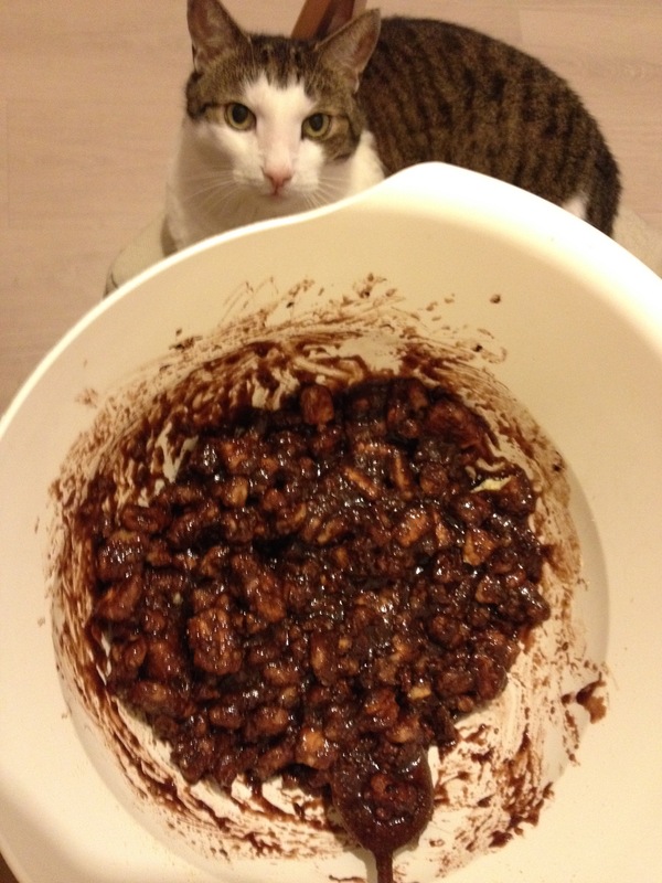 Когда масса хорошо перемешана, закрываем ее от котов и прочих голодных товарищей и ждем пока она остынет до комнатной температуры.
