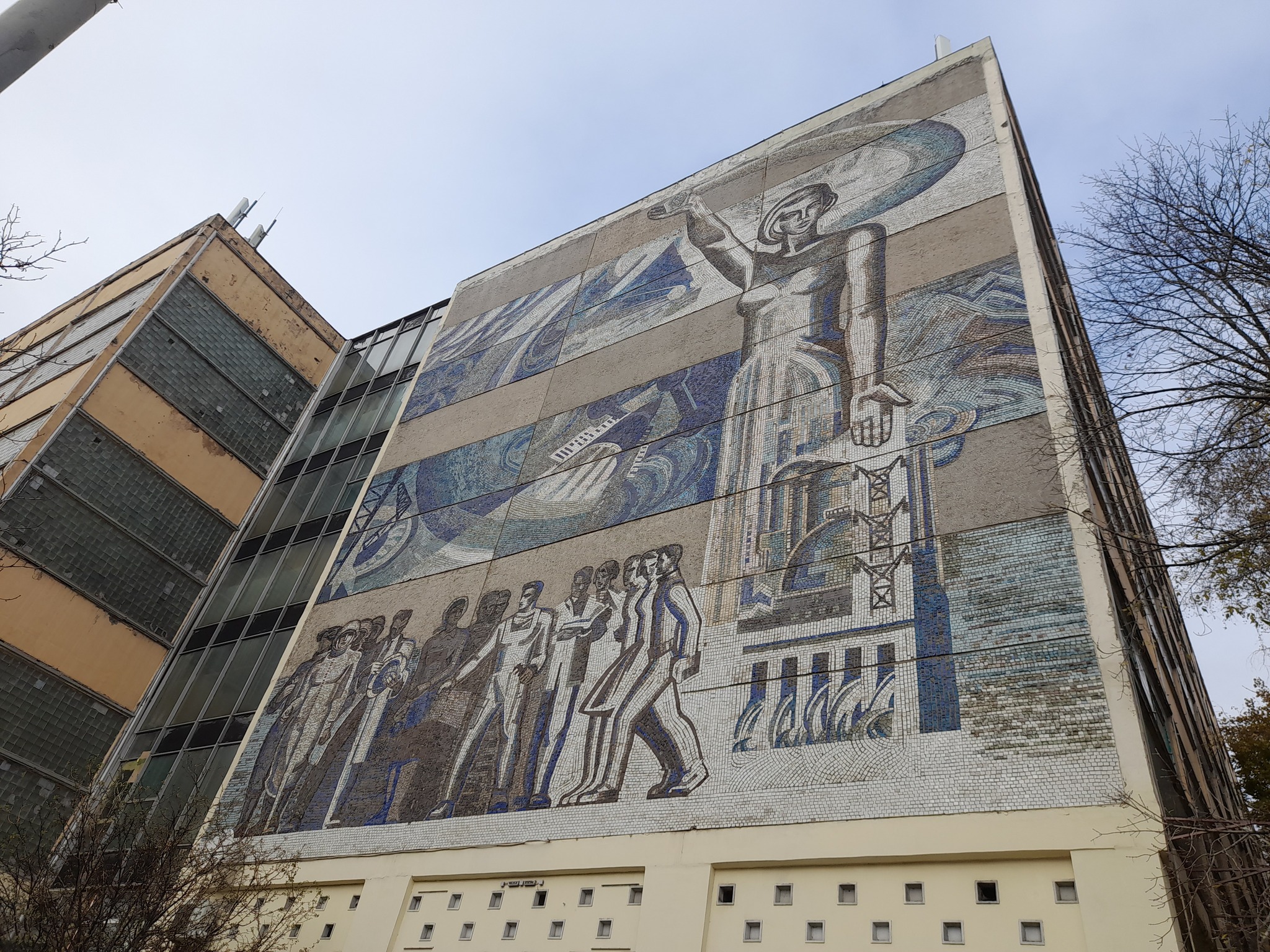 На доме 53 по Щербаковской улице очень интересное мозаичное панно сделано.