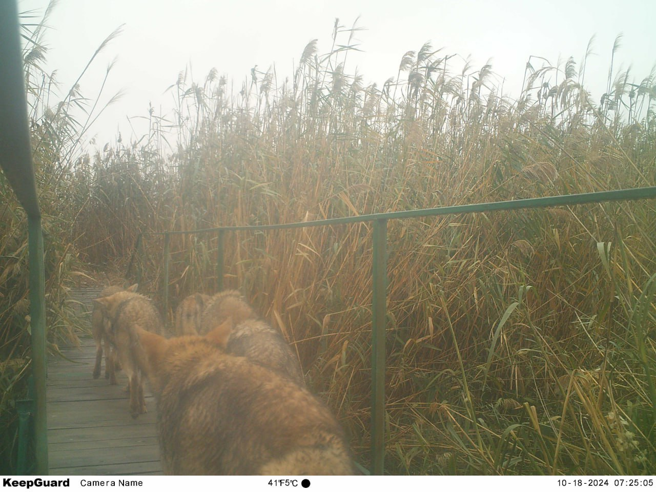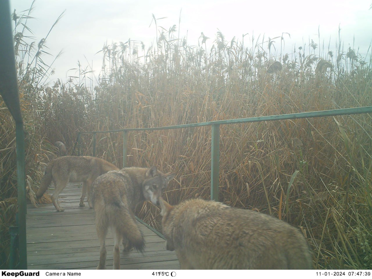 Ревизионная комиссия в составе пяти волков проверяет готовность экотропы к эксплуатации