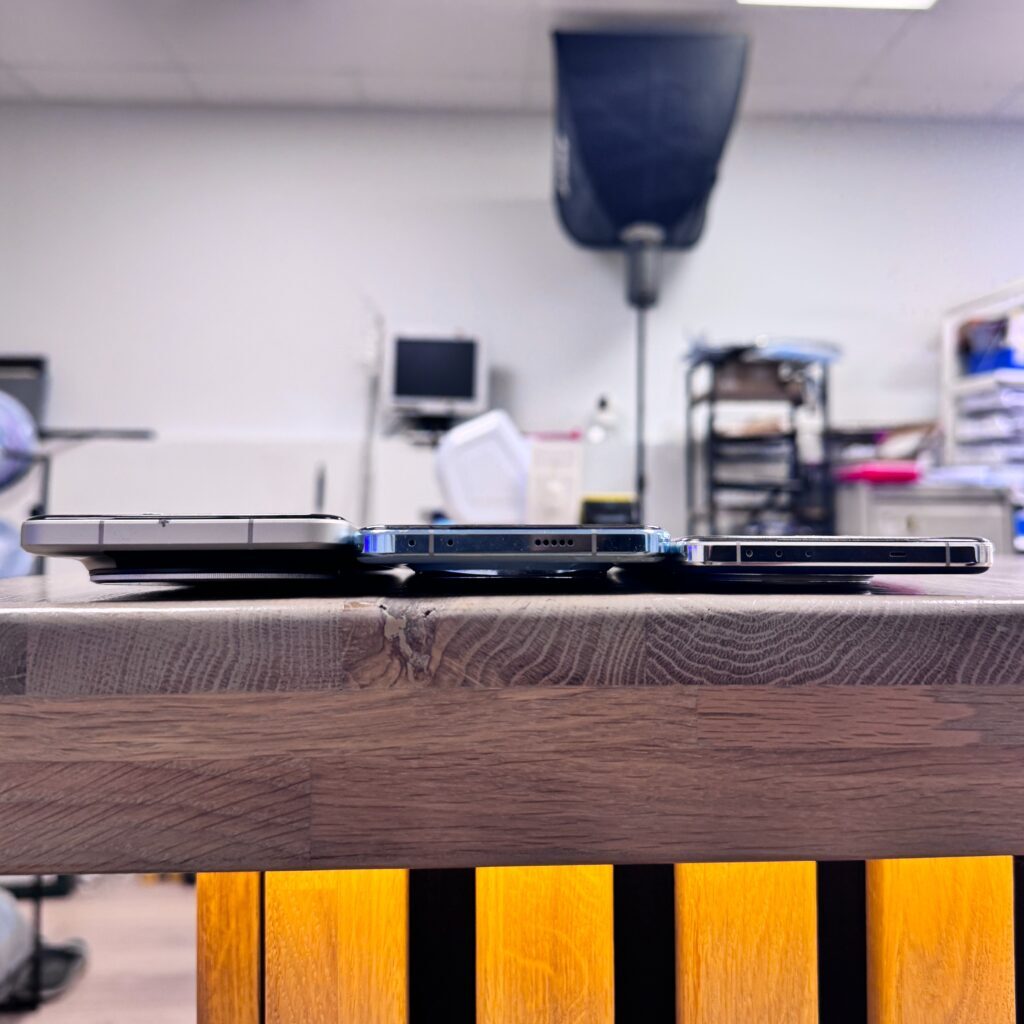 Вот сравнение слева направо трёх топовых китайских флагманов, стоящих в очереди на замену стекла: Xiaomi 15 Ultra, Honor Magic 7 Pro и Magic 6 Pro. И Сяоми среди них — самый здоровый.