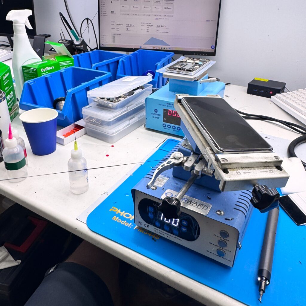 Многие спрашивают, что будет, если дисплей весело хрустнет в процессе переклейки? Ответ прост — купим дисплей за свой счет и поменяем его бесплатно, а цена для клиента не изменится. Такие дела)