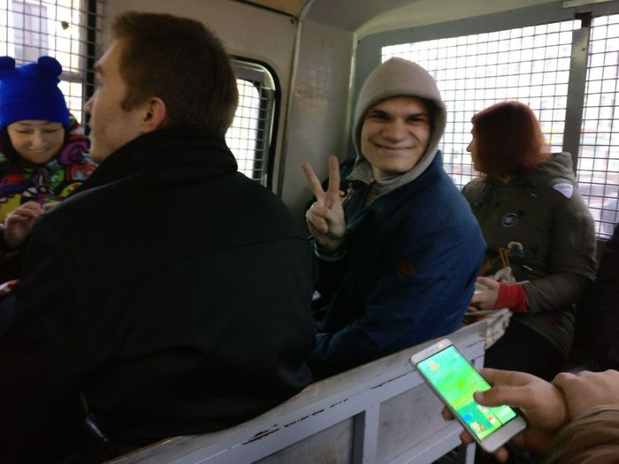 Всё шло хорошо - группе удалось победить, а некоторым - и поймать редкого покемона. После этого группа решила пройти до другой "точки" с "боссом" и двинулась в сторону Настасьинского переулка. Нигде поблизости не было никакого митинга. На перекрёстке к ловцам покемонов подошли сотрудники полиции, попросили предъявить документы и открыть сумки, после выполнения всех требований ребят проводили в автобус с решетками на окнах.