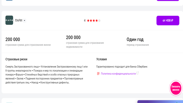 Стоимость полиса ипотечного страхования на 1 год - от 458 руб. (при страховой сумме 200 тыс.)