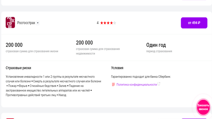 Стоимость полиса ипотечного страхования на 1 год - от 494 руб. (при страховой сумме 200 тыс.)