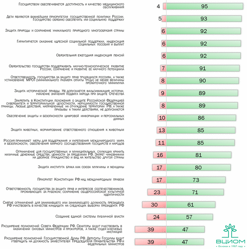 Рейтинг поправок к Конституции (по версии ВЦИОМ)