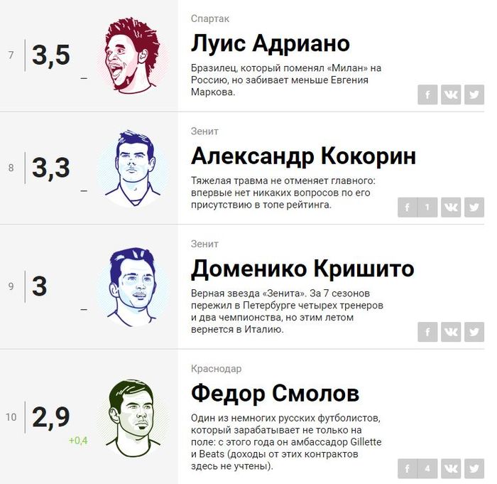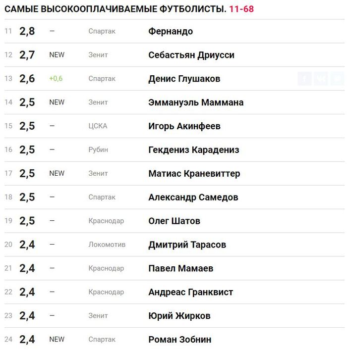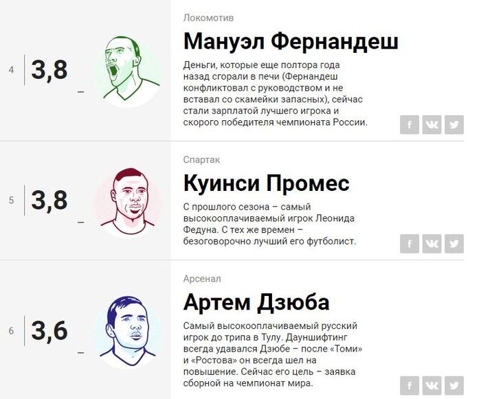 Еще пример: ежегодный оклад Артема Дзюбы, по информации Sports.ru, составляет 3 миллиона евро, за подписание пятилетнего контракта с «Зенитом» он получил бонус в размере 3 миллионов евро. 3 млн оклада + 600 тысяч ежегодного бонуса = 3,6 млн этого рейтинга.