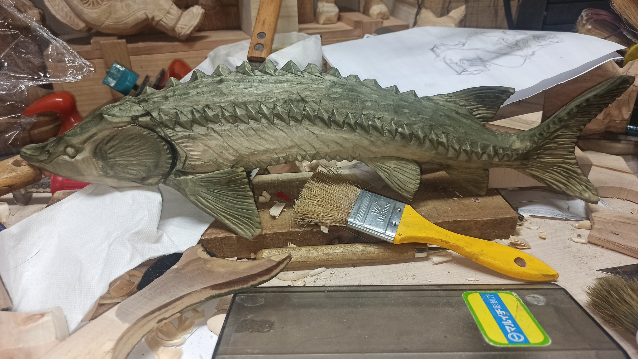 Рыбов делать не умею и не очень нравится. За правильность размеров, формы и пр. могу сказать только то, что не хватает насмотренности. Вживую осётра не наблюдал никогда, имею представление о нем лишь по картинкам.