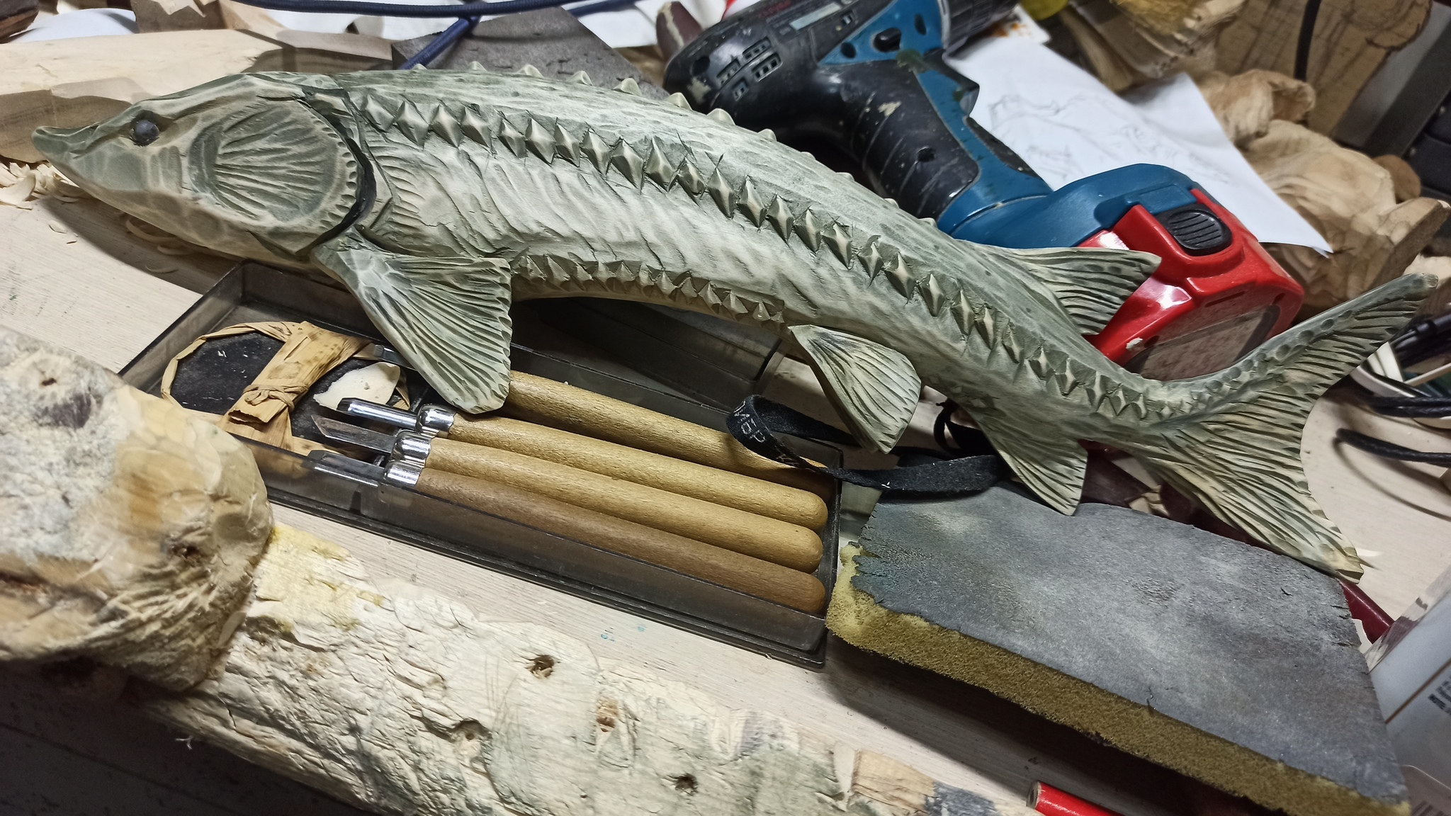 Здравствуйте, товарищи! В общем, так: добрый человек и столяр по совместительству (которому я делал вывеску из недавнего поста) предложил сделать "пробник" осётра. Мол, покажу его одному товарищу и будет тебе заказ на мильён. Я сделаль. Я отдаль. Я ждать.