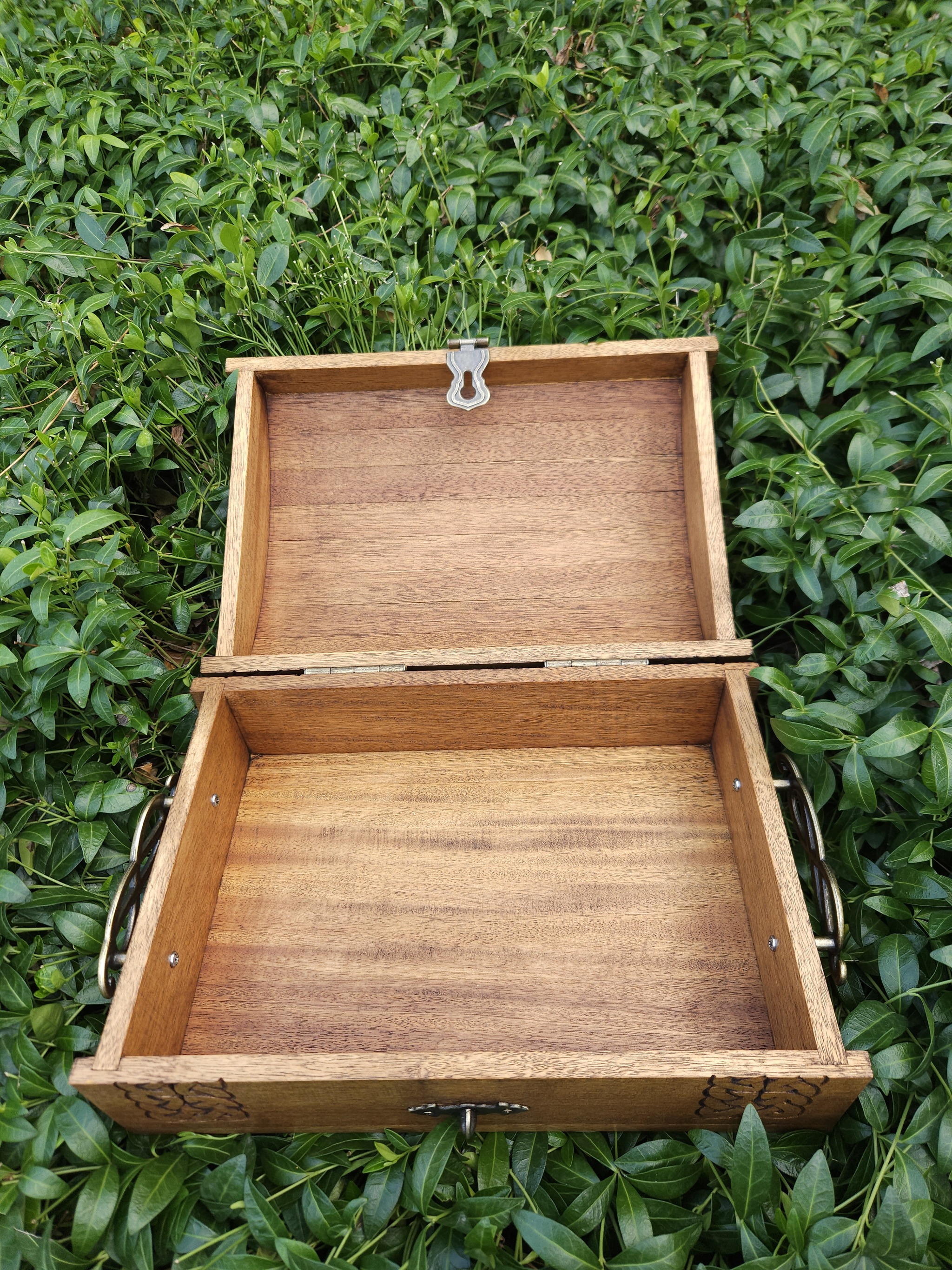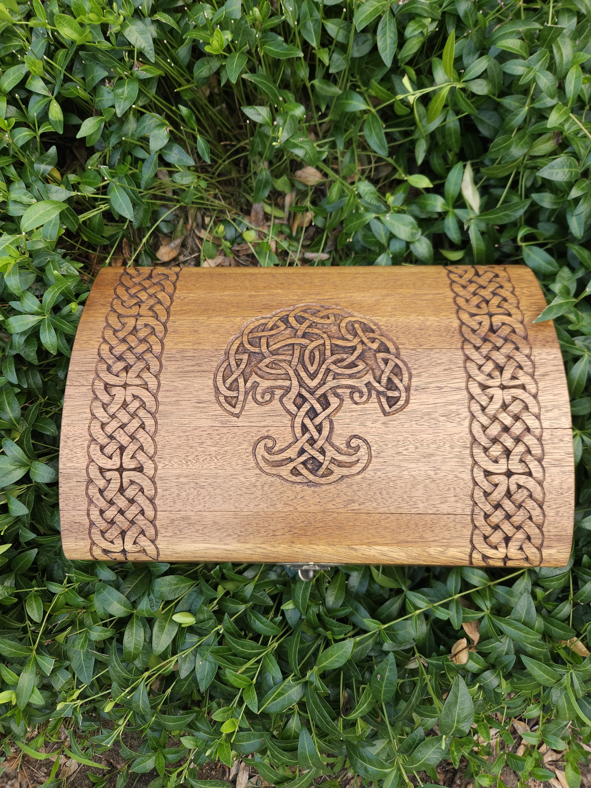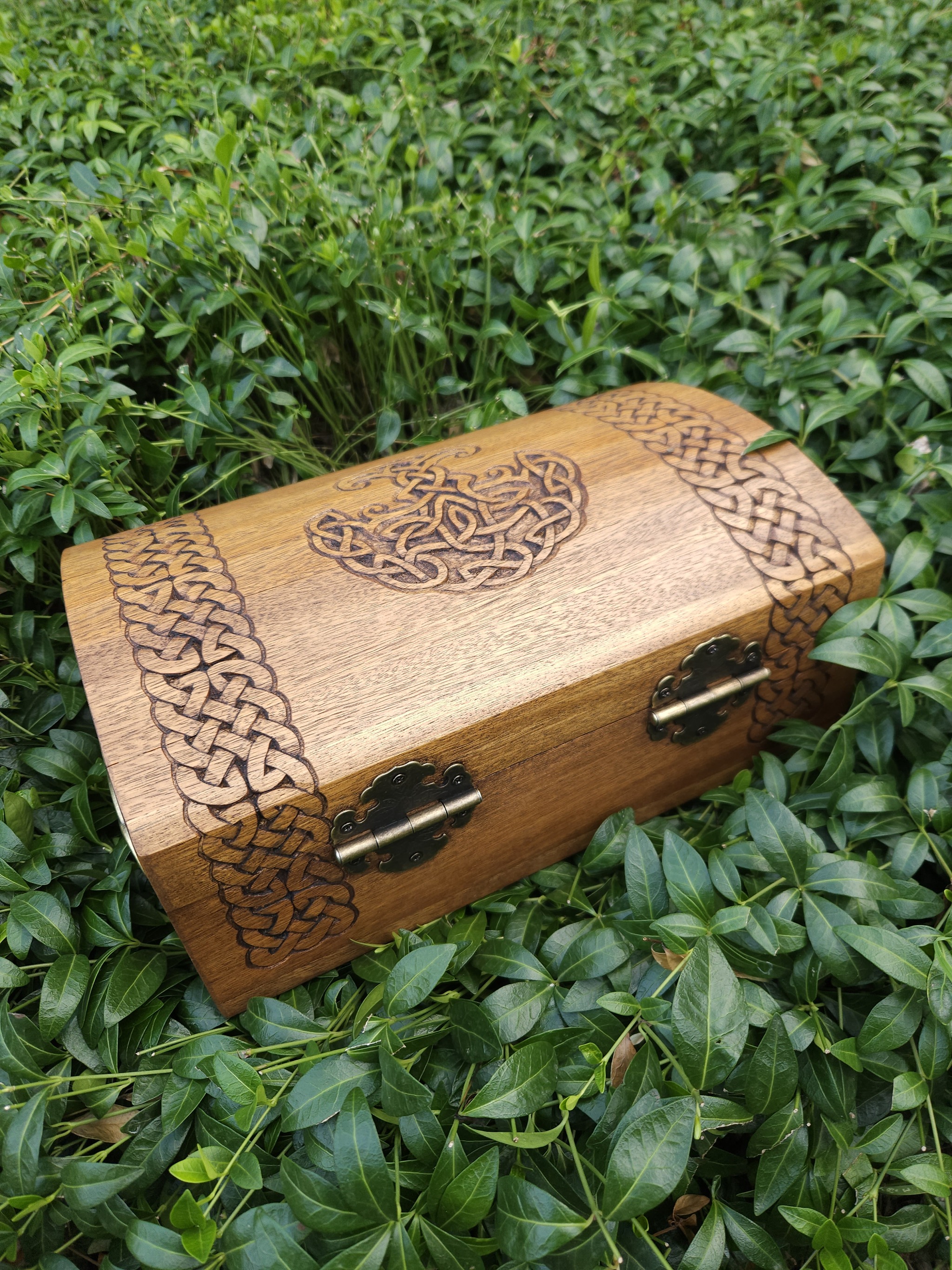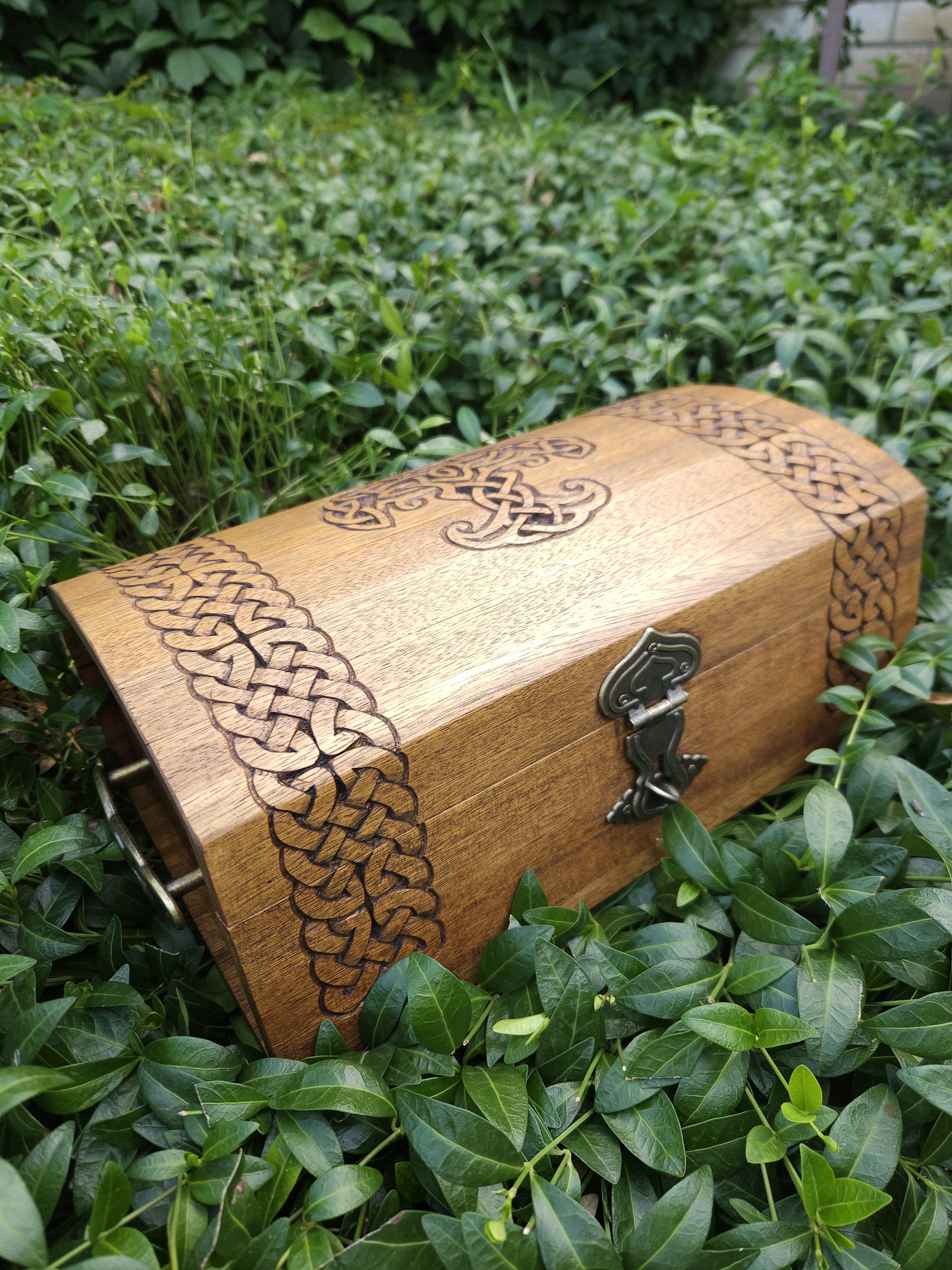 Закончил недавно вот такой сундучок из древесины дуба. Резьба выполнена полностью вручную, без использования станков с ЧПУ. Размеры внутри 30х22х7 см без учёта высоты крышки.