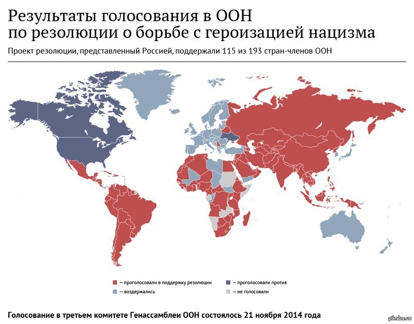 18 Drendan Политика Результаты голосования по резолюции о борьбе с героизацией нацизма. 11 лет назад Информация ООН Нацизм Резолюция Политика
