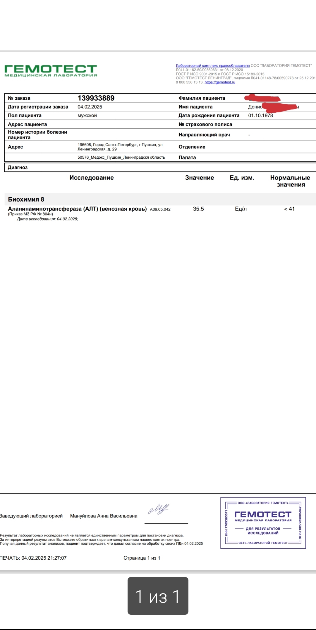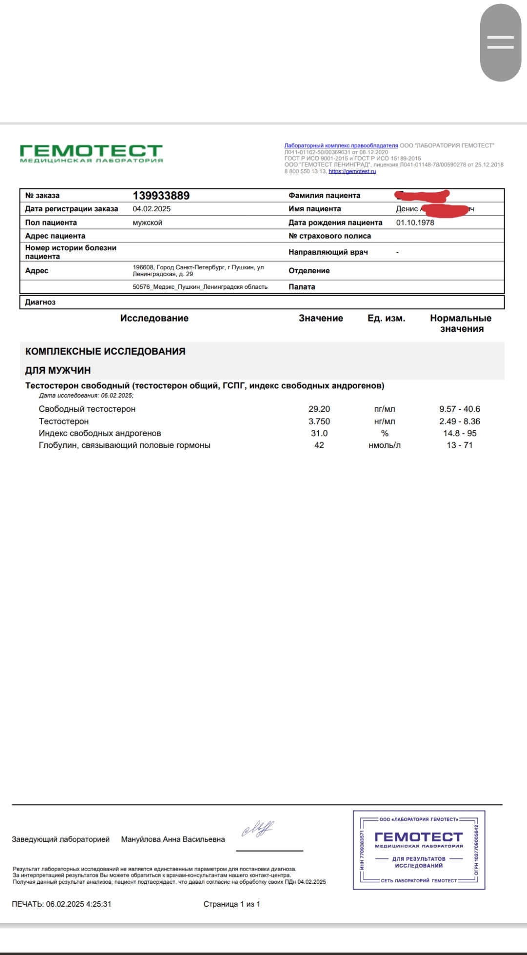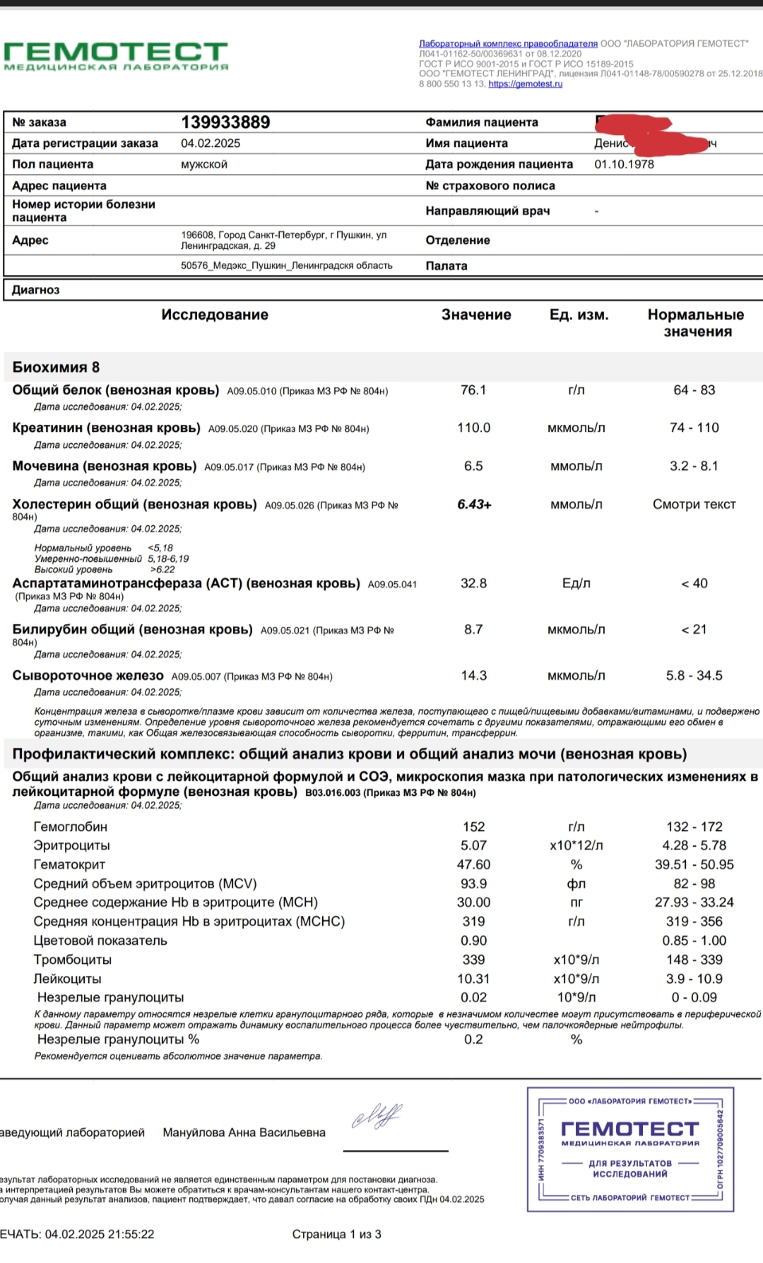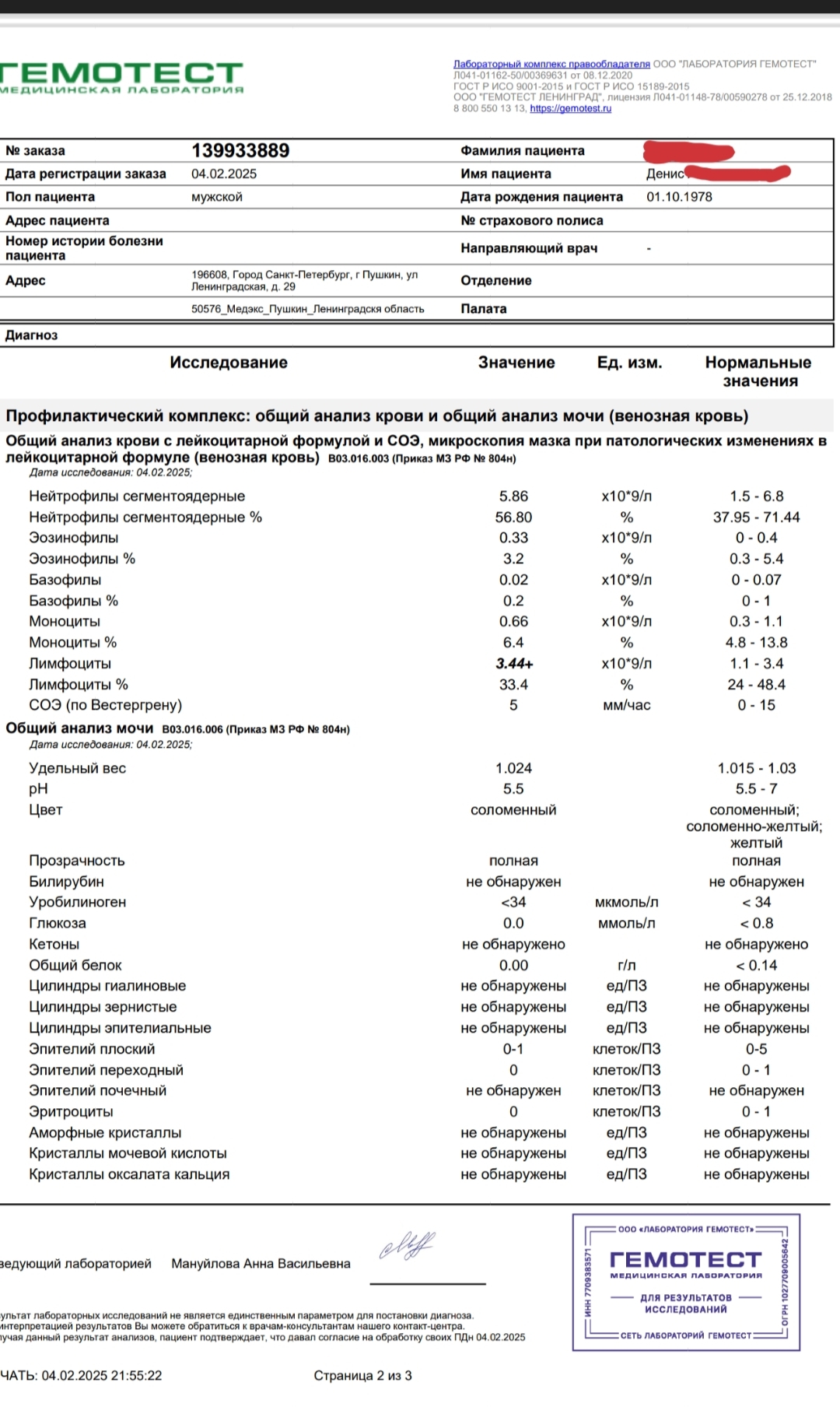Итак, вот и результаты всех анализов по состоянию на 04 февраля 2025г.