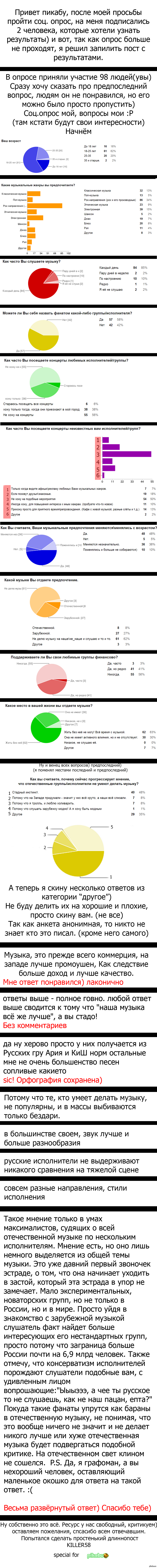 8 KILLER58 Результаты опроса) 11 лет назад Надеюсь мои 2 новых подписчика довольны ^^ [моё] Длиннопост Опрос Музыка