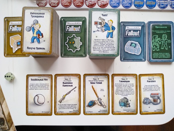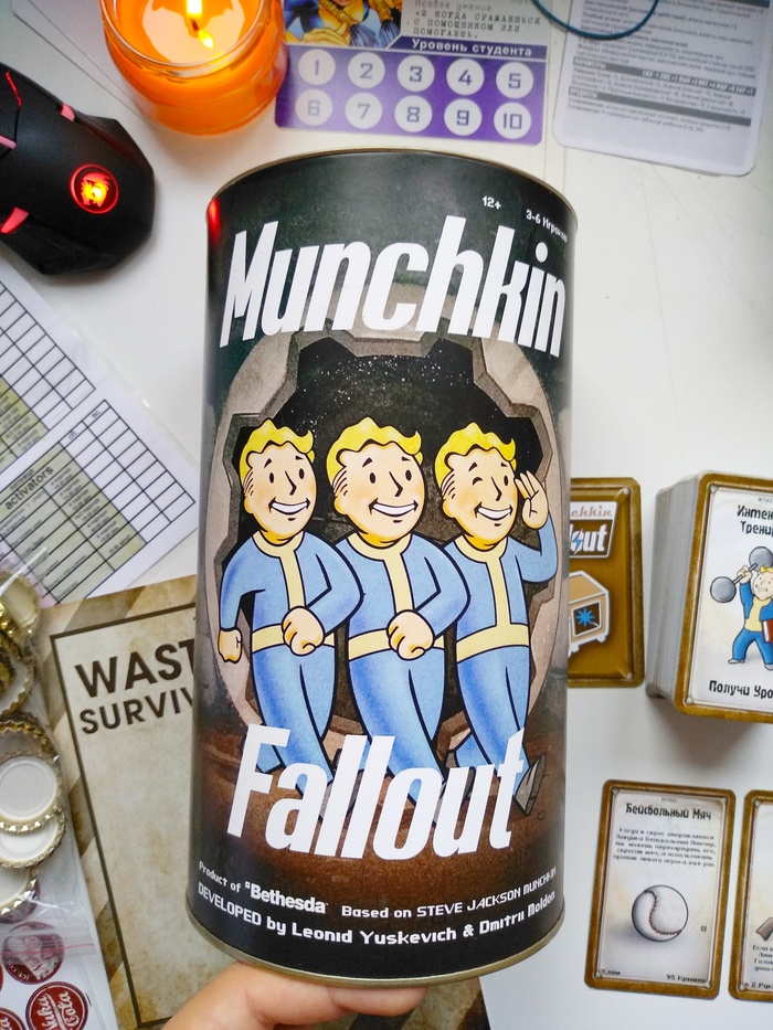 Ну а на десерт - пока все мы 3й год ждем новый Манчкин Фоллаут, я накидал по готовым макетам автора обновку рубашек и лицевых рамок у карт, обложку правил. Ну и сам заодно оформление тубы для игры переверстал.