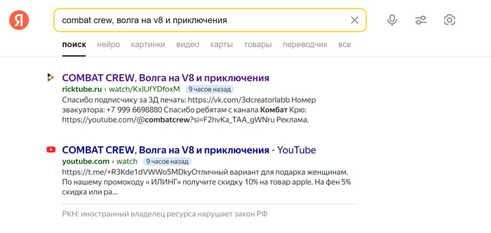 Спешу поделиться фактом: по некоторым роликам риктуб начал показываться выше в выдаче, чем аналогичные отечественные видеохостинги