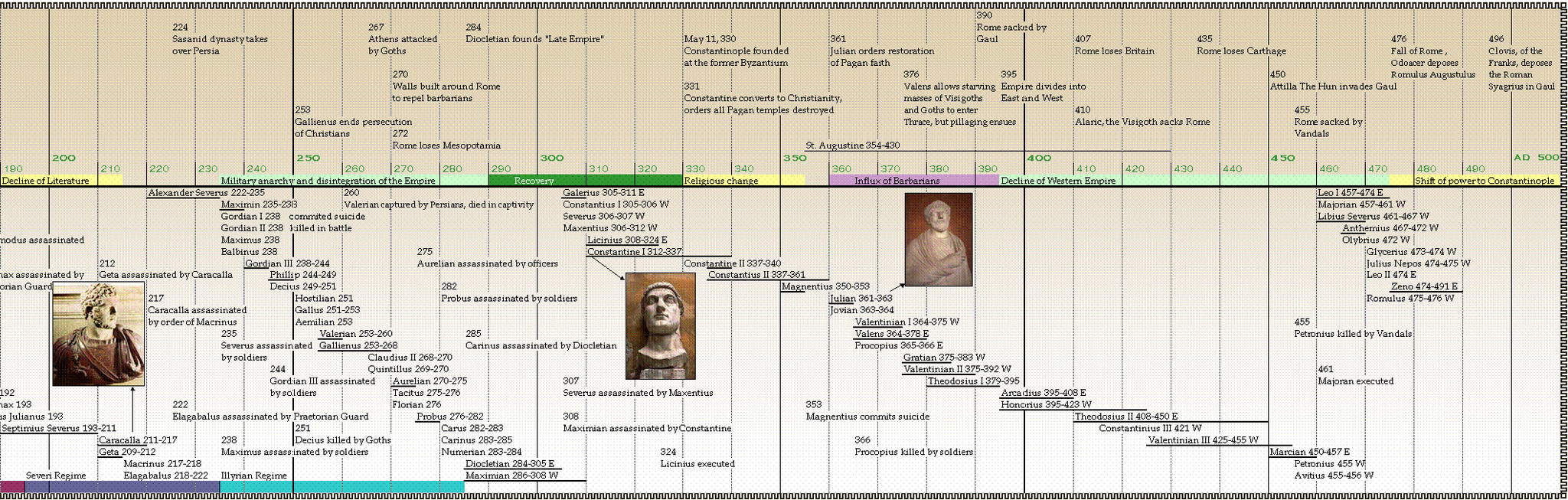 Ниже небольшой таймлайн со всеми правителями римской империи, чтобы вы не охренели от кучи новых имен. Снизу императоры и причины смерти, сверху важные события. Хоть и на английском, но знания языка нужны самые поверхностные