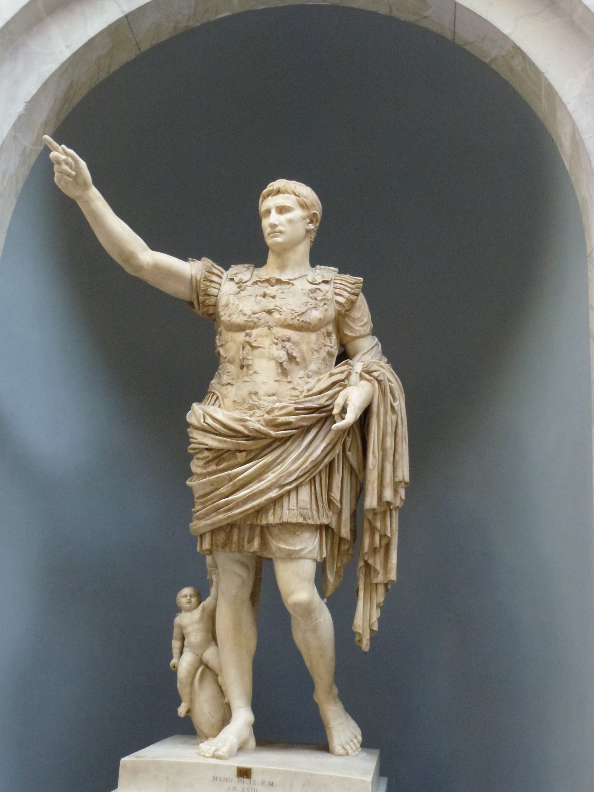 Обычно, изображение мускулаты демонстрируют на примере статуи Октавиана Августа, найденной на вилле Ливии в Прима Порта (оригинал с которого она была выполнена датируется 20 г. до н.э.).