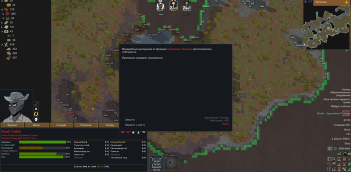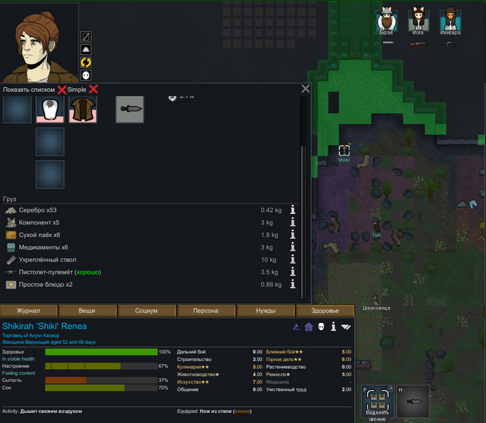 Около полуночи к нам пришли гости. Вооружены ржавыми ножами, но ссориться с мирной фракцией из-за нескольких сухпайков и медикаментов - дурной тон. Отправили Иглу оторваться от охоты и поторговать с гостями: пока есть серебро - нужно выкупить по максимуму припасов. Увы, миномётный ствол нам не по карману, но и изучить, как его использовать, мы не успели, всему своё время.