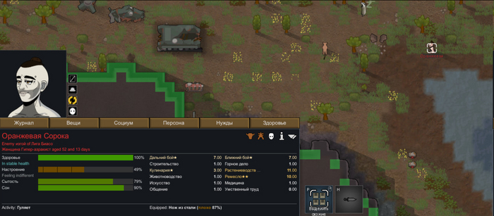 Под утро снова мимо нашего лагеря проходил житель соседнего поселения, и в этот раз с полезными навыками... Но печенек, чтобы его пригласить к нам, у нас нет, захват и вербовка это на будущее, когда хоть как-то наладим быт и разберёмся, кого из соседей лучше не трогать, да и зиндан для этого нужно выкопать.