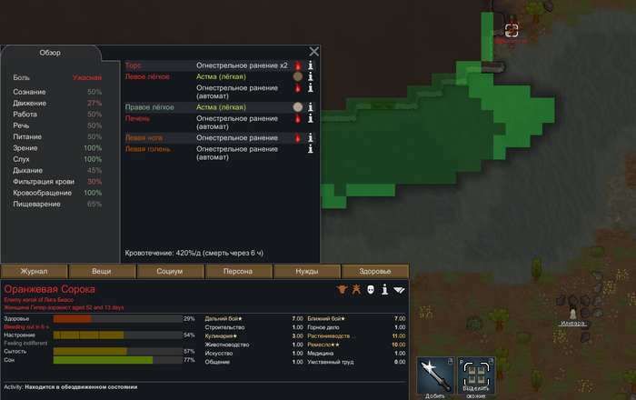 Брать в плен - увы, ни у него нет интересных способностей, ни у нас нет возможности разобрать на органы (хранить пока негде) или ресурсов содержать как раба (самим бы в зиму голодными не уйти). Да и раны очень серьёзные. Как практика медсестре Игле - самое оно, но дотащить до неё проблема - огромная кровопотеря, а бой был далеко от нашей базы.