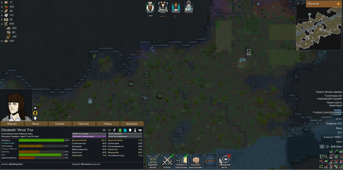Сегодня к утру Бурав наконец закончил копать и обустраивать холодильник и кухню, только плиту почему-то построил дровяную, хотя всё равно ради холодильника пришлось делать генератор. Будет время - поменяем. Риск остаться без еды миновал, остававшиеся сухпайки (десяток где-то) отложили до походов или на чёрный день, и перешли на питание Лизиной стряпнёй.